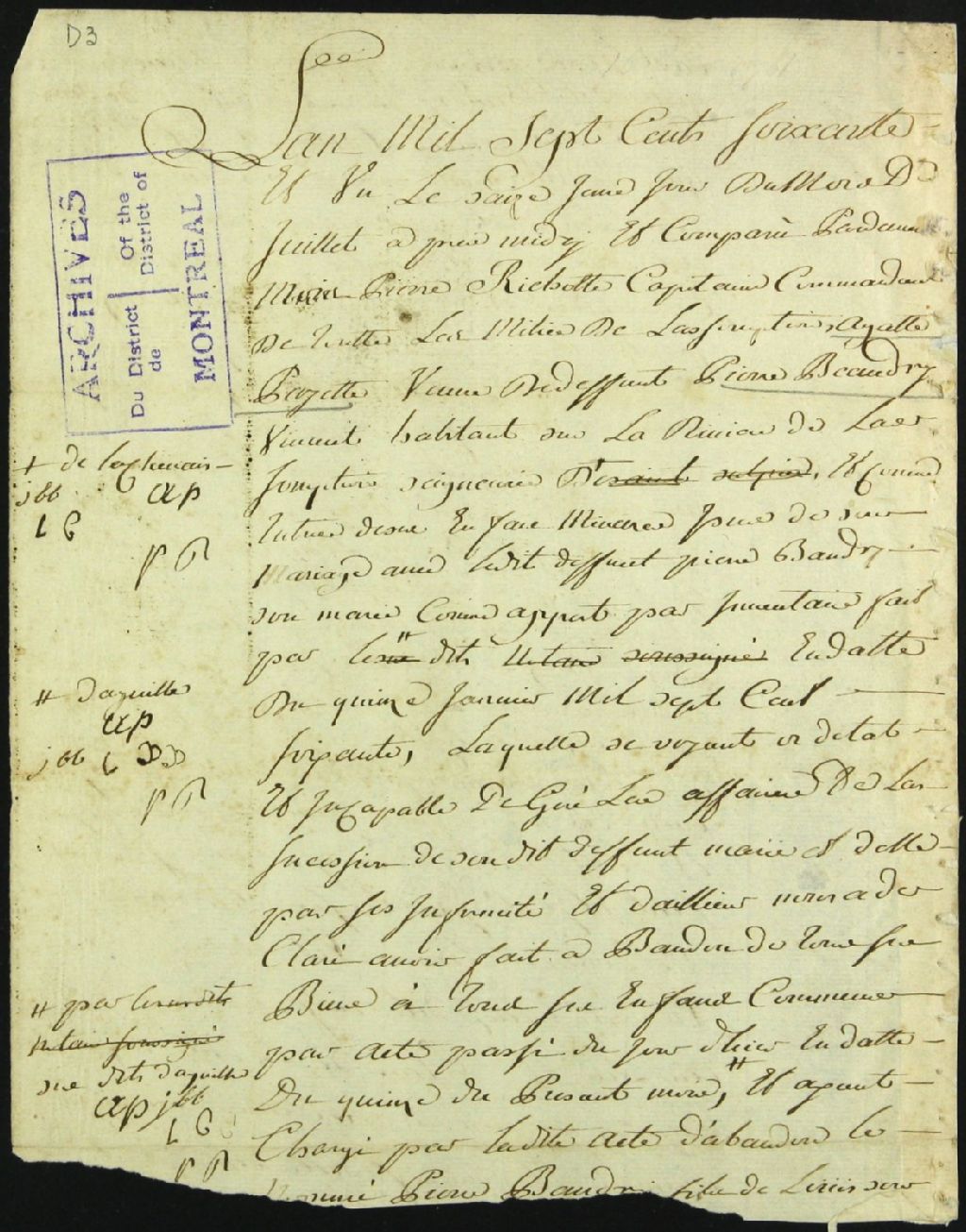 Tutelle des enfants mineurs de feu Pierre Beaudry et d'Agathe Payette [Payet], 16 juin 1761, Archives nationales à Montréal, Fonds Cour supérieure. District judiciaire de Montréal. Procédures en matières non contentieuses, (06M,CP601,S4,SS2,D3).