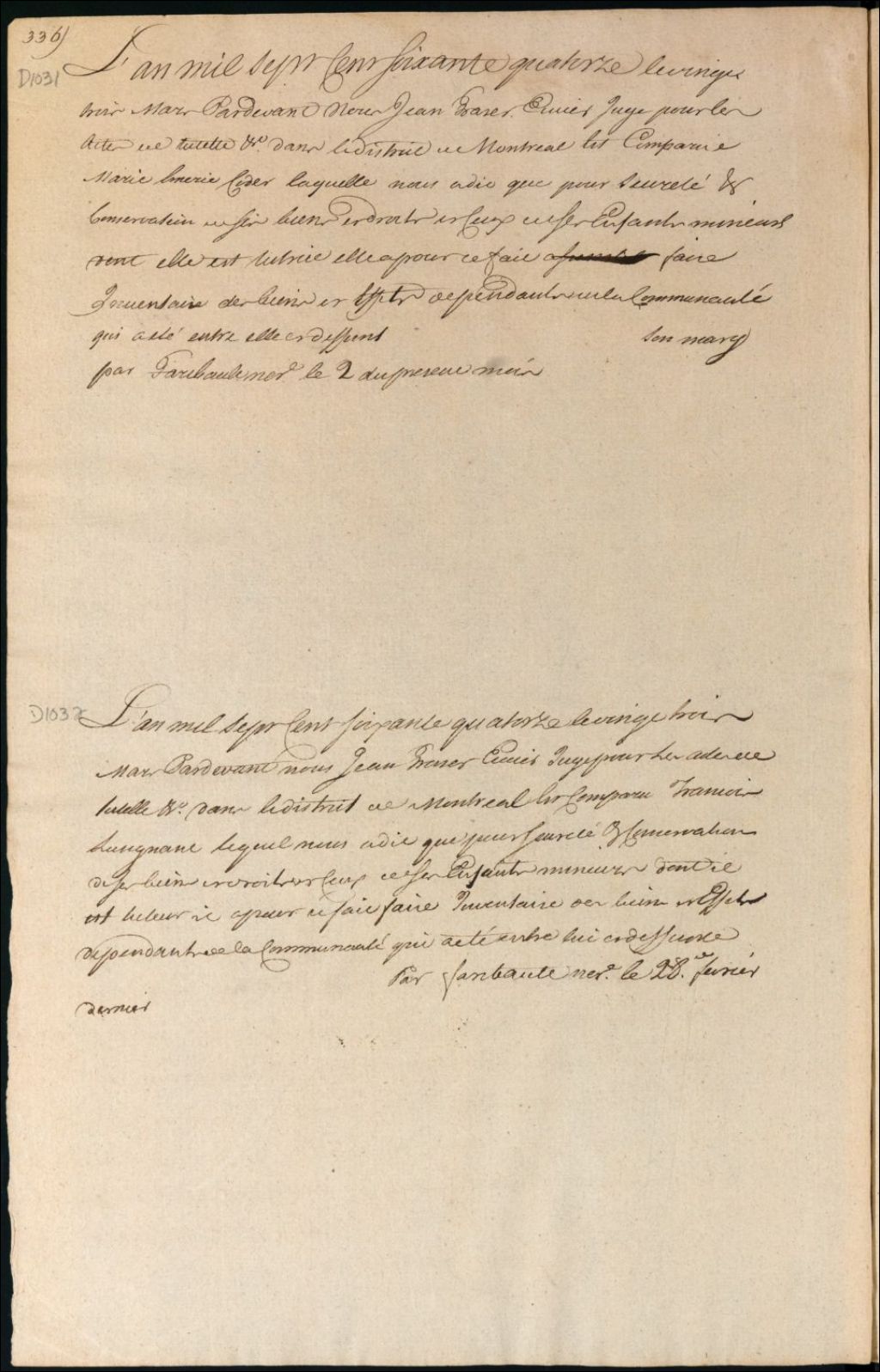 Clôture d'inventaire des biens de la succession et de la communauté de Marie Émery Coderre et feu [Joseph Rondeau]