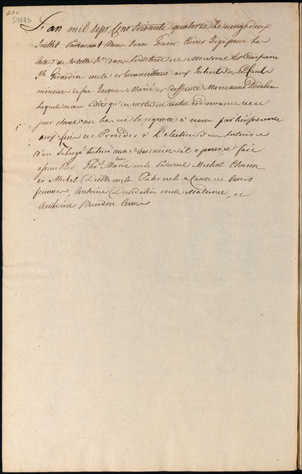 Tutelle des enfants mineurs des défunts Jacques Marier et Marie Anne Daudelin