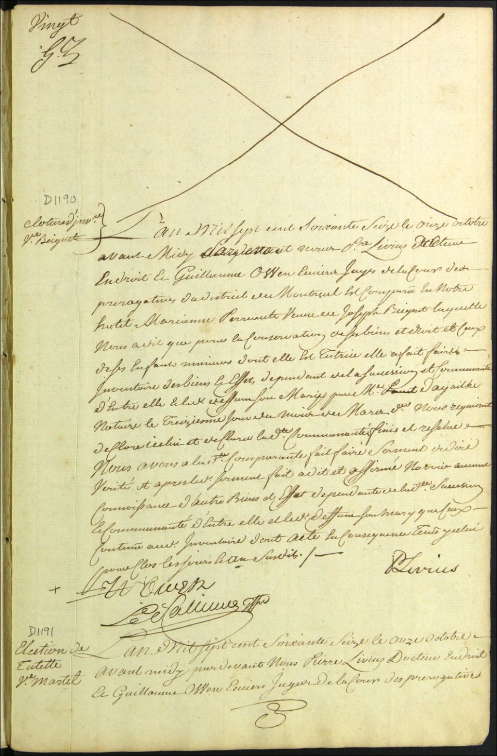 Clôture d'inventaire des biens de la succession et de la communauté de feu Joseph Beignet et Marie Anne Perrault