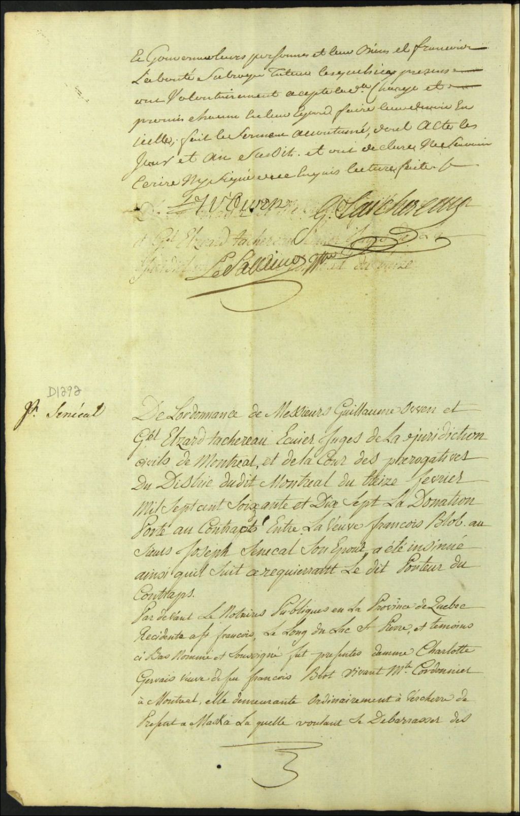 - Insinuation de la donation de Charlotte Gervais, veuve de François Blot [François Bleau], à son époux Joseph Senécal