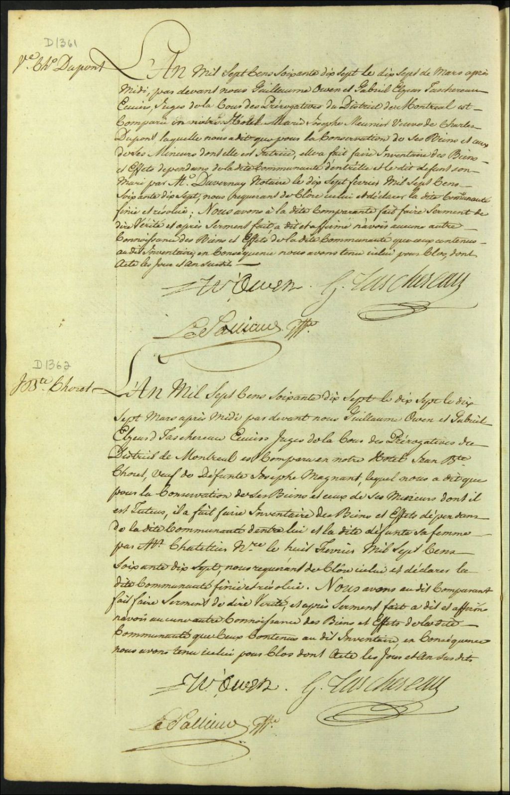 Clôture d'inventaire des biens de la succession et de la communauté de feu Charles Dupont et Marie Josèphe Meunier