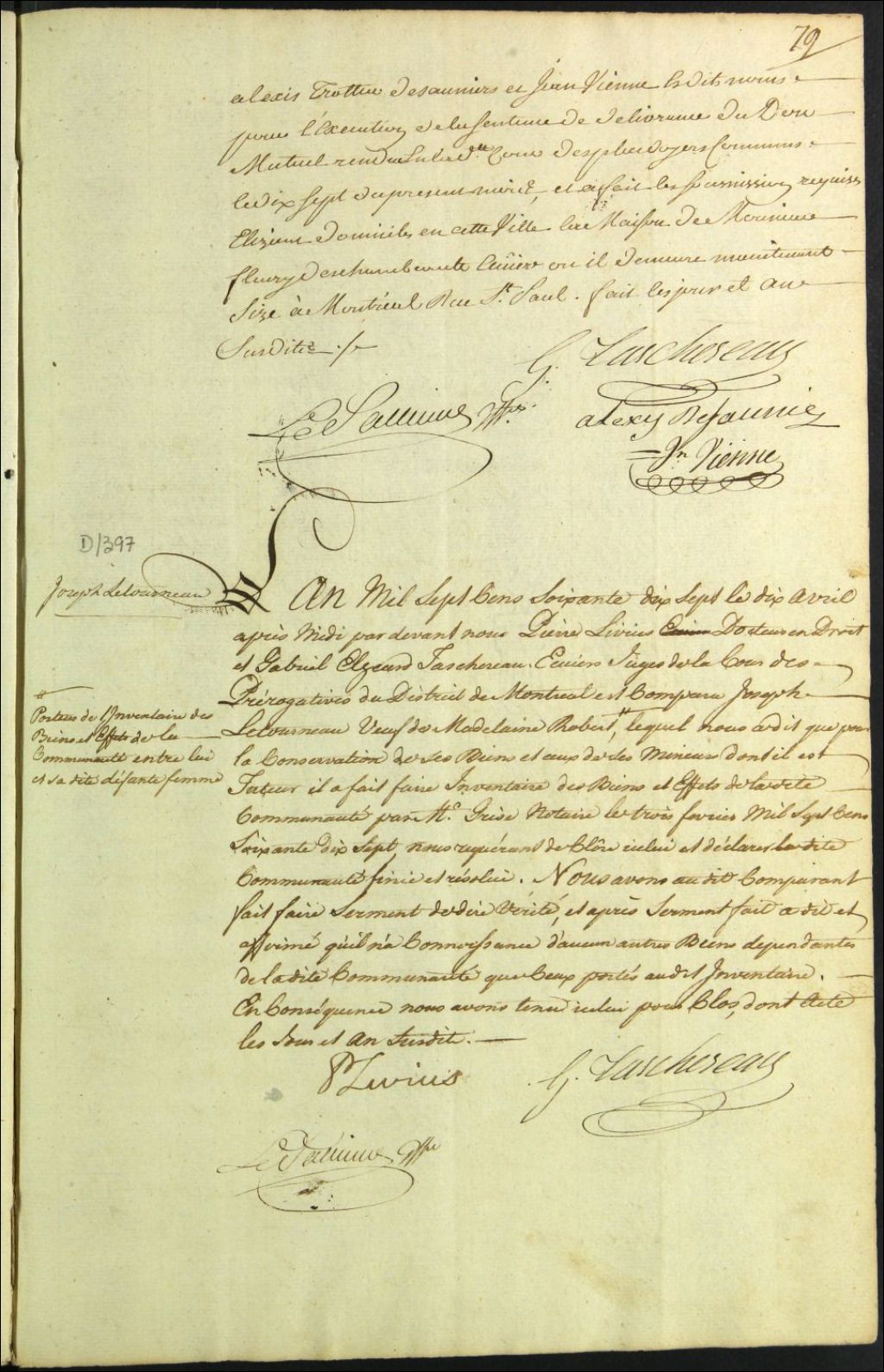 Clôture d'inventaire des biens de la succession et de la communauté de feu Madeleine Robert et Joseph Létourneau