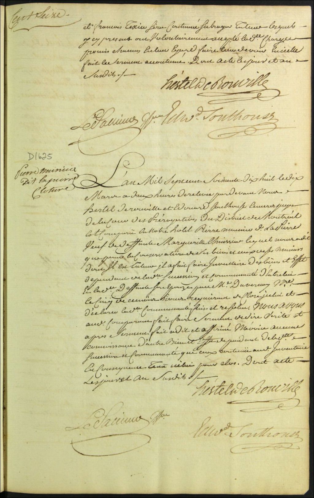 Clôture d'inventaire des biens de la succession et de la communauté de feu Marguerite Lhuissier [Marguerite Lussier] et Pierre Meunier Lapierre