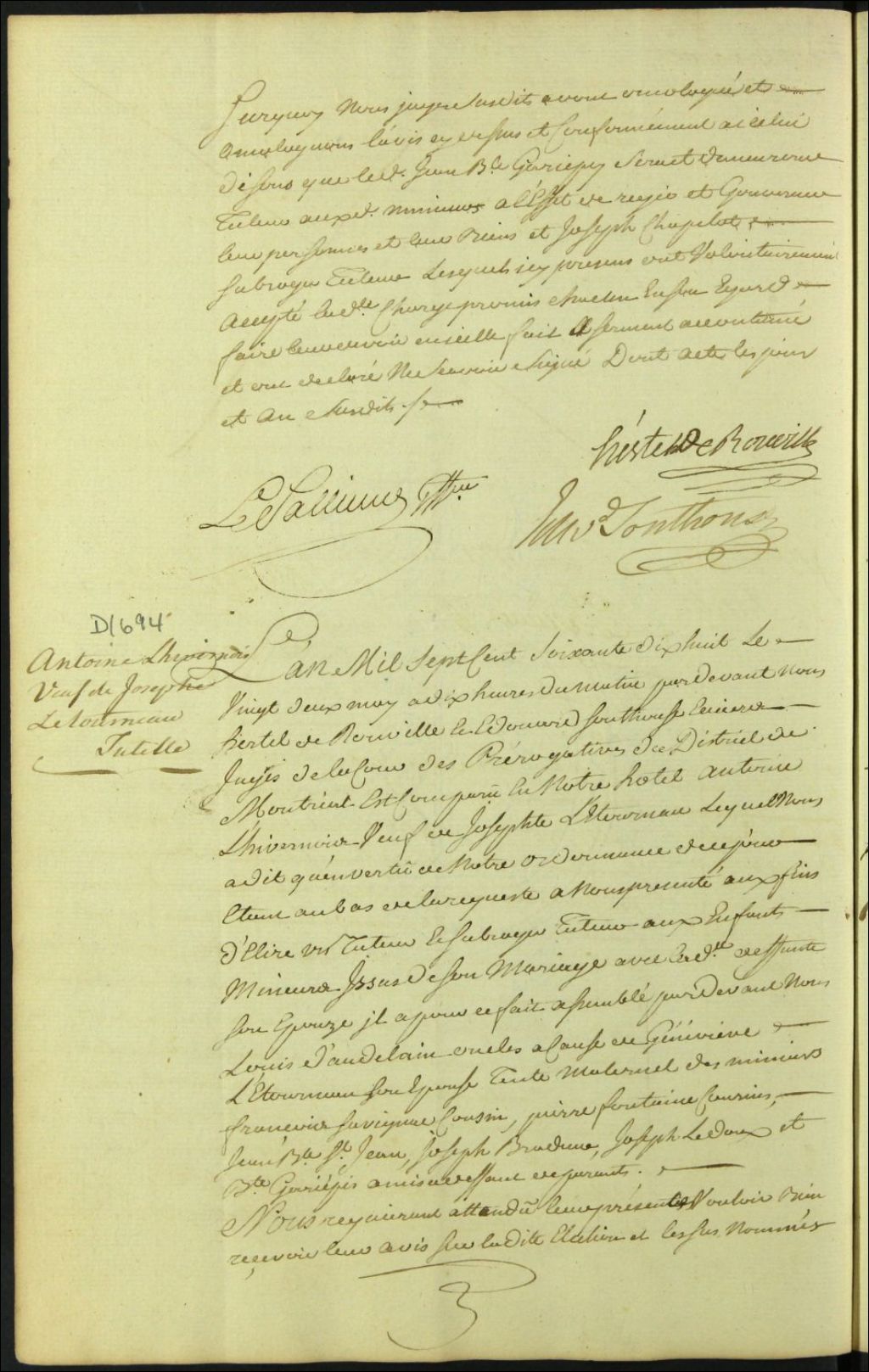 Tutelle des enfants mineurs de feu Josèphe Létourneau et d'Antoine Livernois, 22 mai 1778, Archives nationales à Montréal, Fonds Cour supérieure. District judiciaire de Montréal. Procédures en matières non contentieuses, (06M,CP601,S5,D1694).