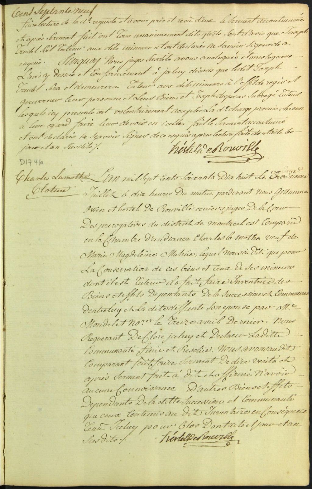 Clôture d'inventaire des biens de la succession et de la communauté de feu Marie Madeleine Maheu et Charles Lamothe