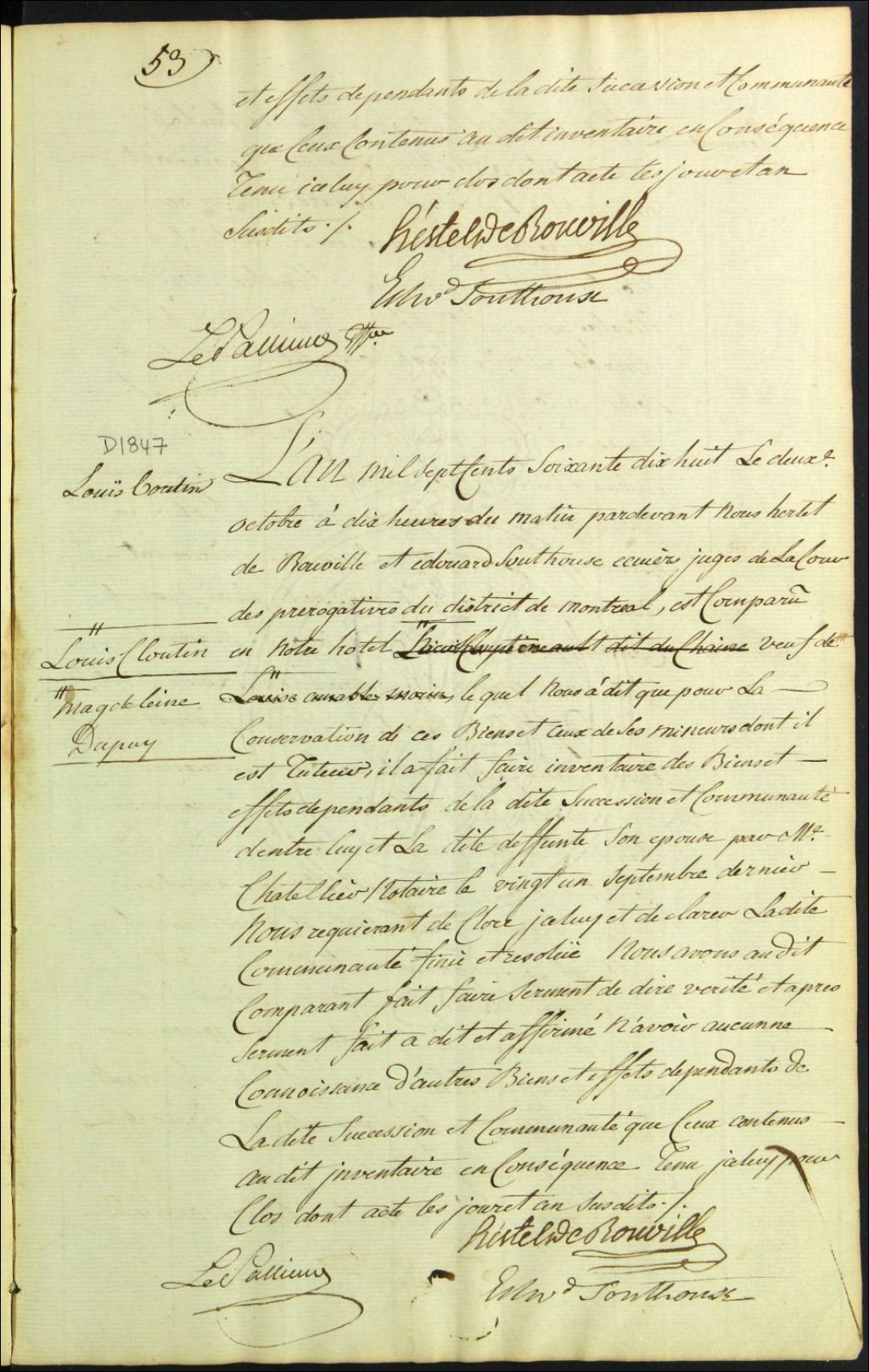 Clôture d'inventaire des biens de la succession et de la communauté de feu Madeleine Dupuy et Louis Cloutier