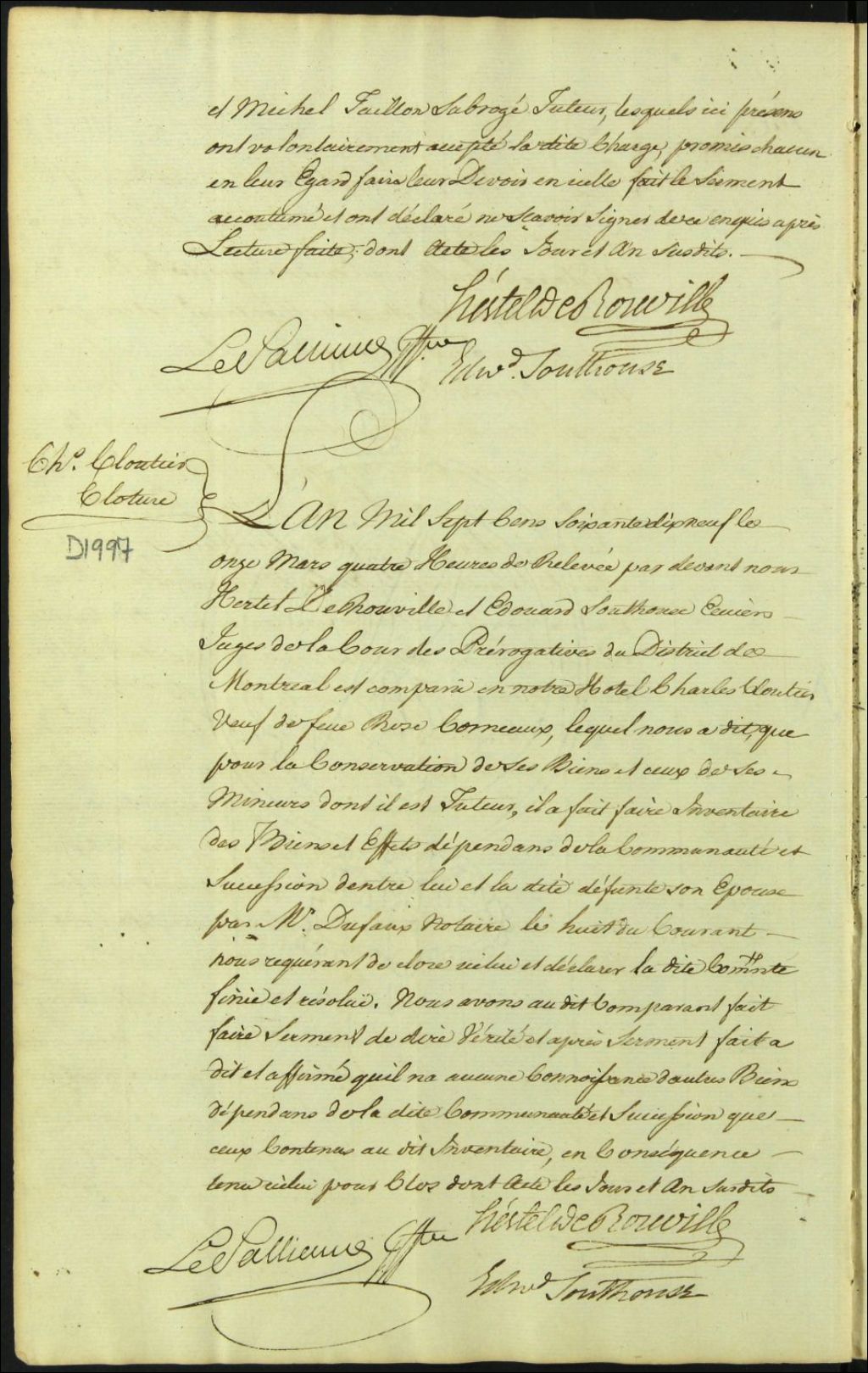 Clôture d'inventaire des biens de la succession et de la communauté de feu Rose Corneau et Charles Cloutier