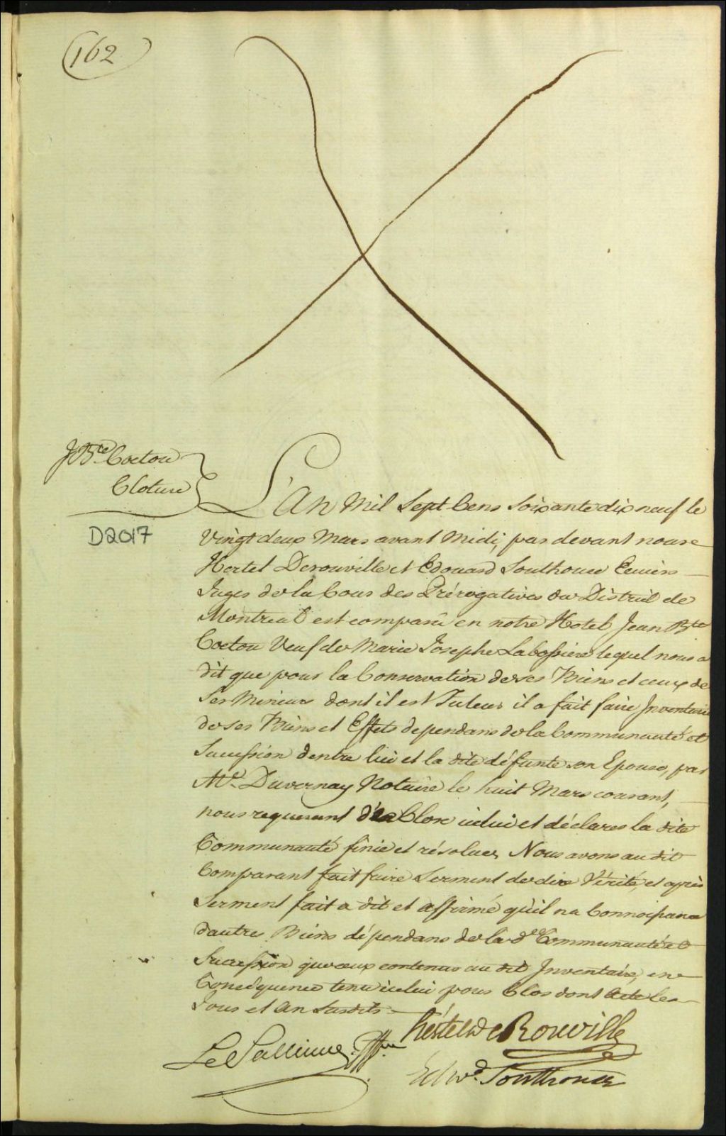 Clôture d'inventaire des biens de la succession et de la communauté de feu Marie Josèphe Labossière et Jean Baptiste Coitou