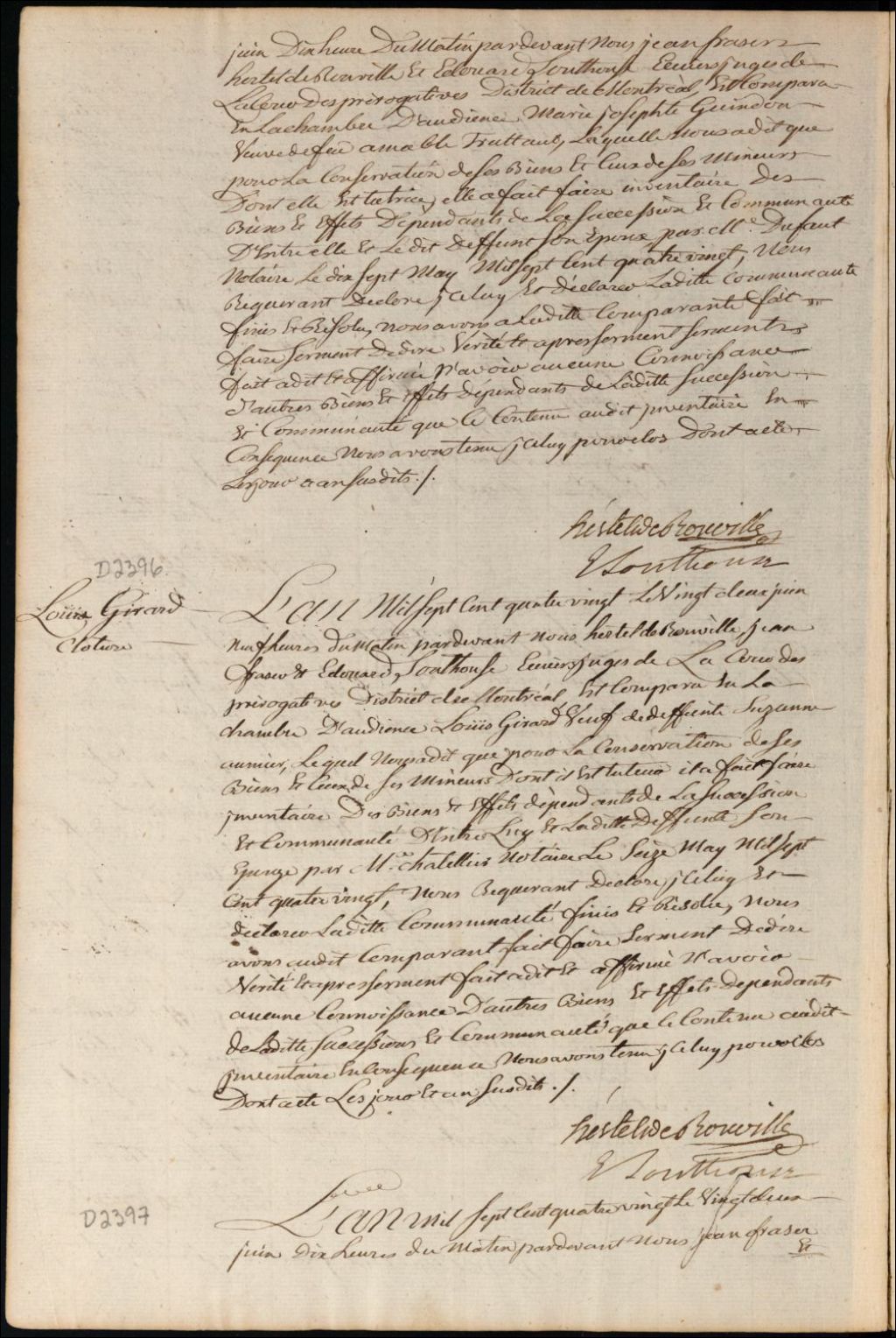 Tutelle des enfants mineurs de feu Élisabeth Martin et de François Blot [François Bleau], 22 juin 1780, Archives nationales à Montréal, Fonds Cour supérieure. District judiciaire de Montréal. Procédures en matières non contentieuses, (06M,CP601,S5,D2397).