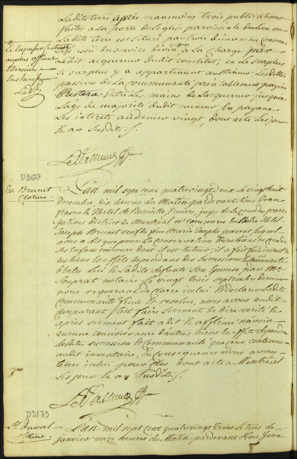 Clôture d'inventaire des biens de la succession et de la communauté de feu Marie Josèphe Parent et Joseph Brunet