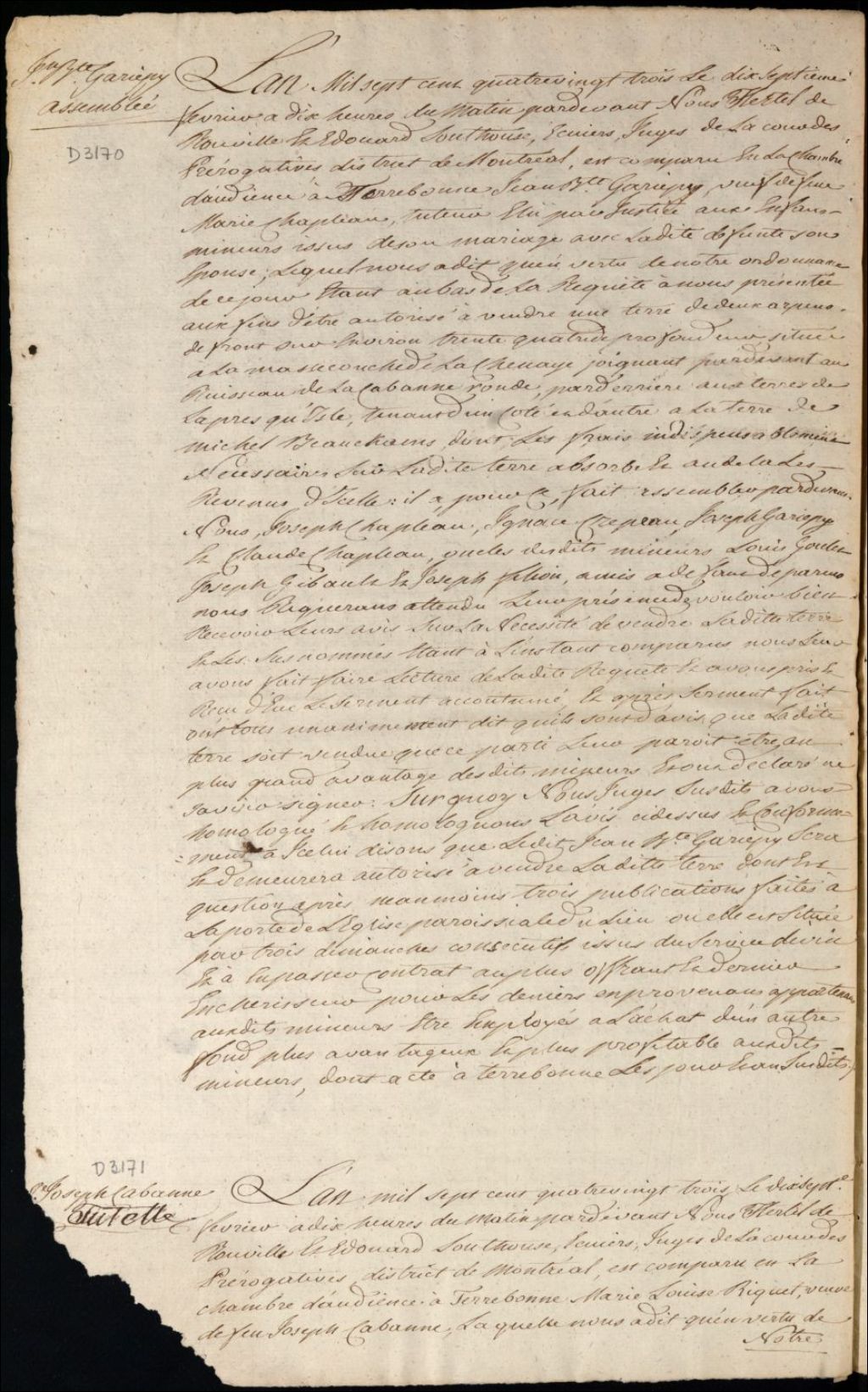 Tutelle des enfants mineurs de feu Marie Chapleau et Jean Baptiste Gariépy - Administration tutélaire