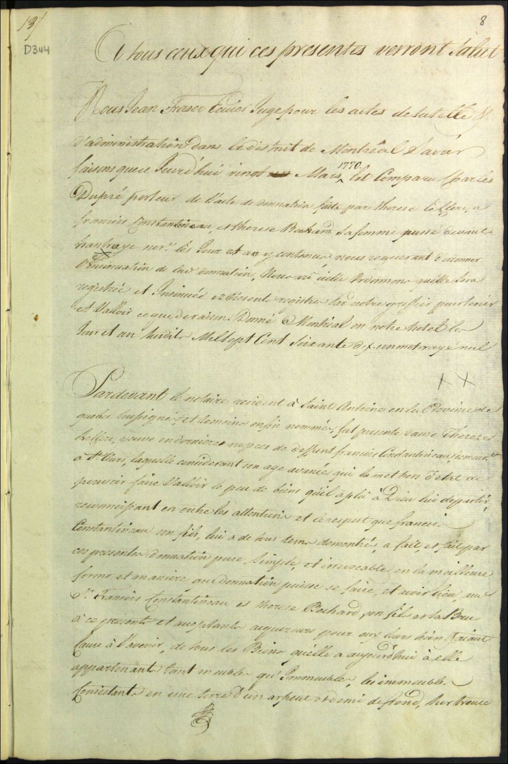 - Insinuation de la donation de Thérèse Leclerc à François Constantineau et Thérèse Béchard, son épouse