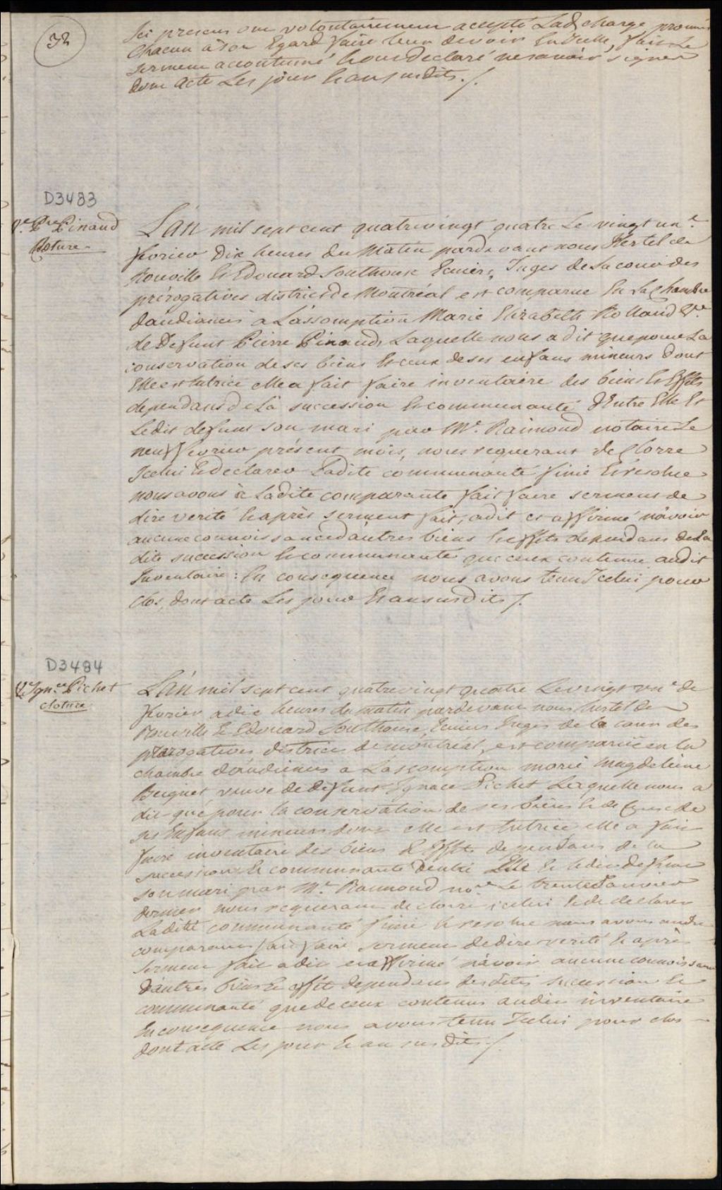 Clôture d'inventaire des biens de la succession et de la communauté de feu Pierre Pinaud [Pierre Pineault] et Marie Élisabeth Rolland