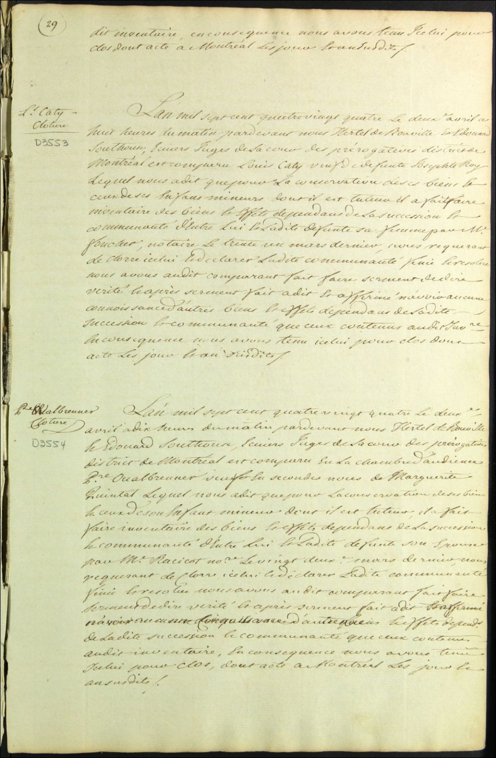 Clôture d'inventaire des biens de la succession et de la communauté de feu Josèphe Roy et Louis Caty
