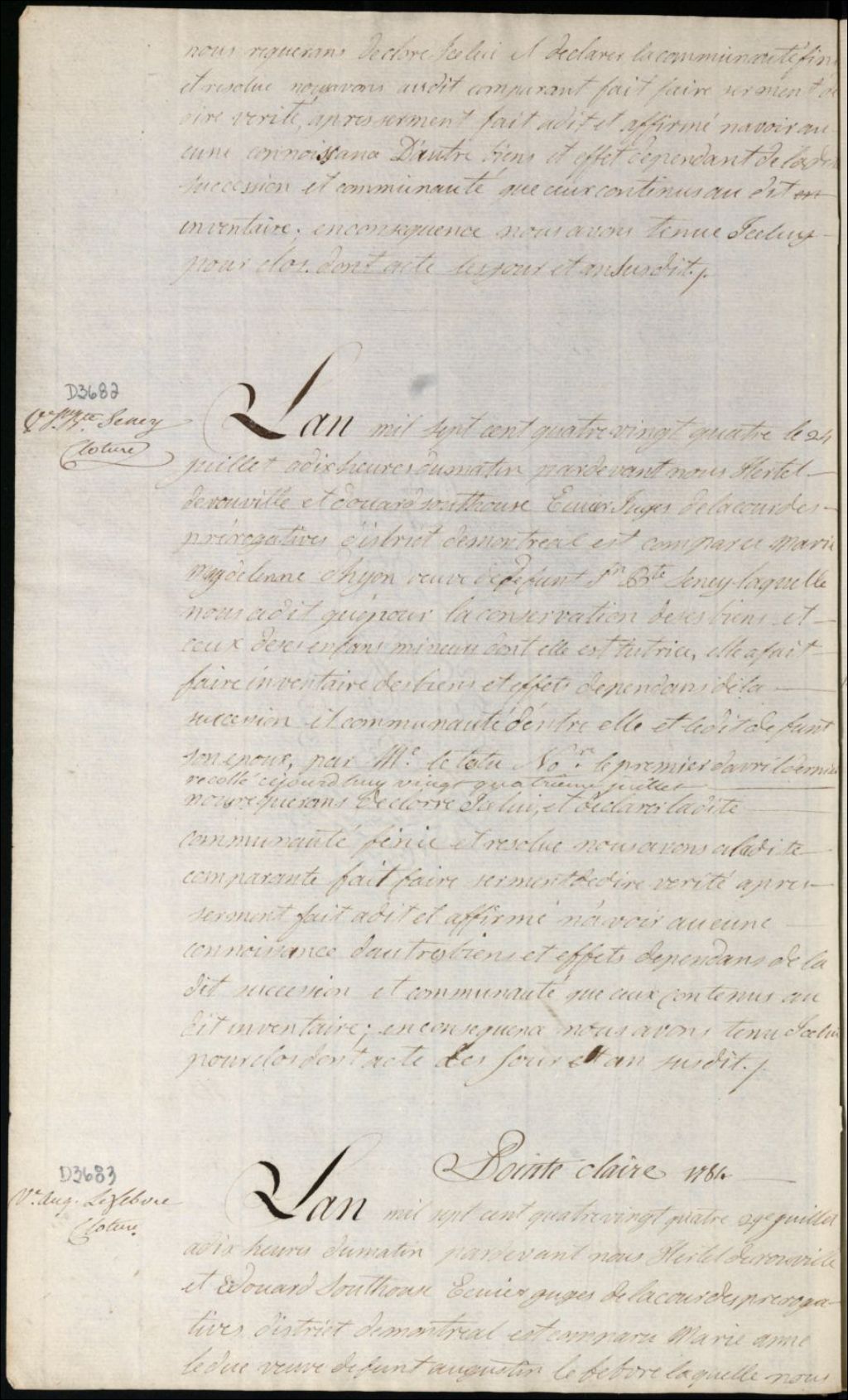 Clôture d'inventaire des biens de la succession et de la communauté de feu Jean Baptiste Senez et Marie Madeleine Hyon [Marie Madeleine Dion]