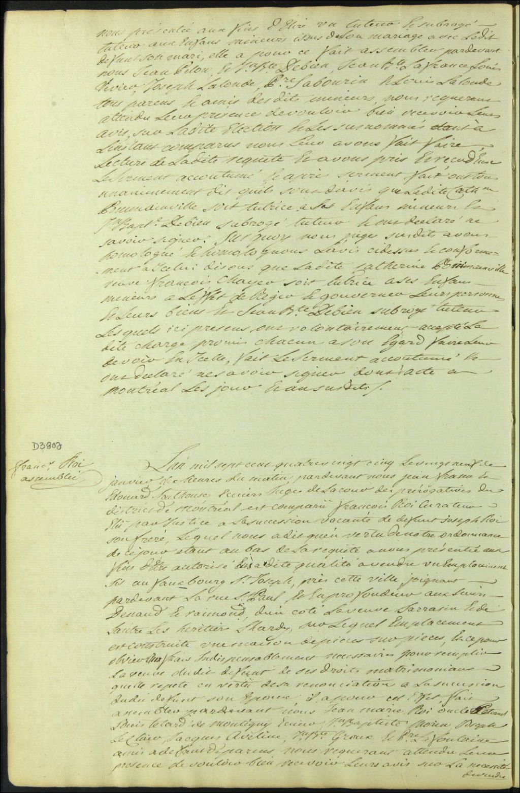 Curatelle de la succession vacante de feu Joseph Roy, époux de Marie Jérôme, 29 janvier 1785, Archives nationales à Montréal, Fonds Cour supérieure. District judiciaire de Montréal. Procédures en matières non contentieuses, (06M,CP601,S5,D3802).