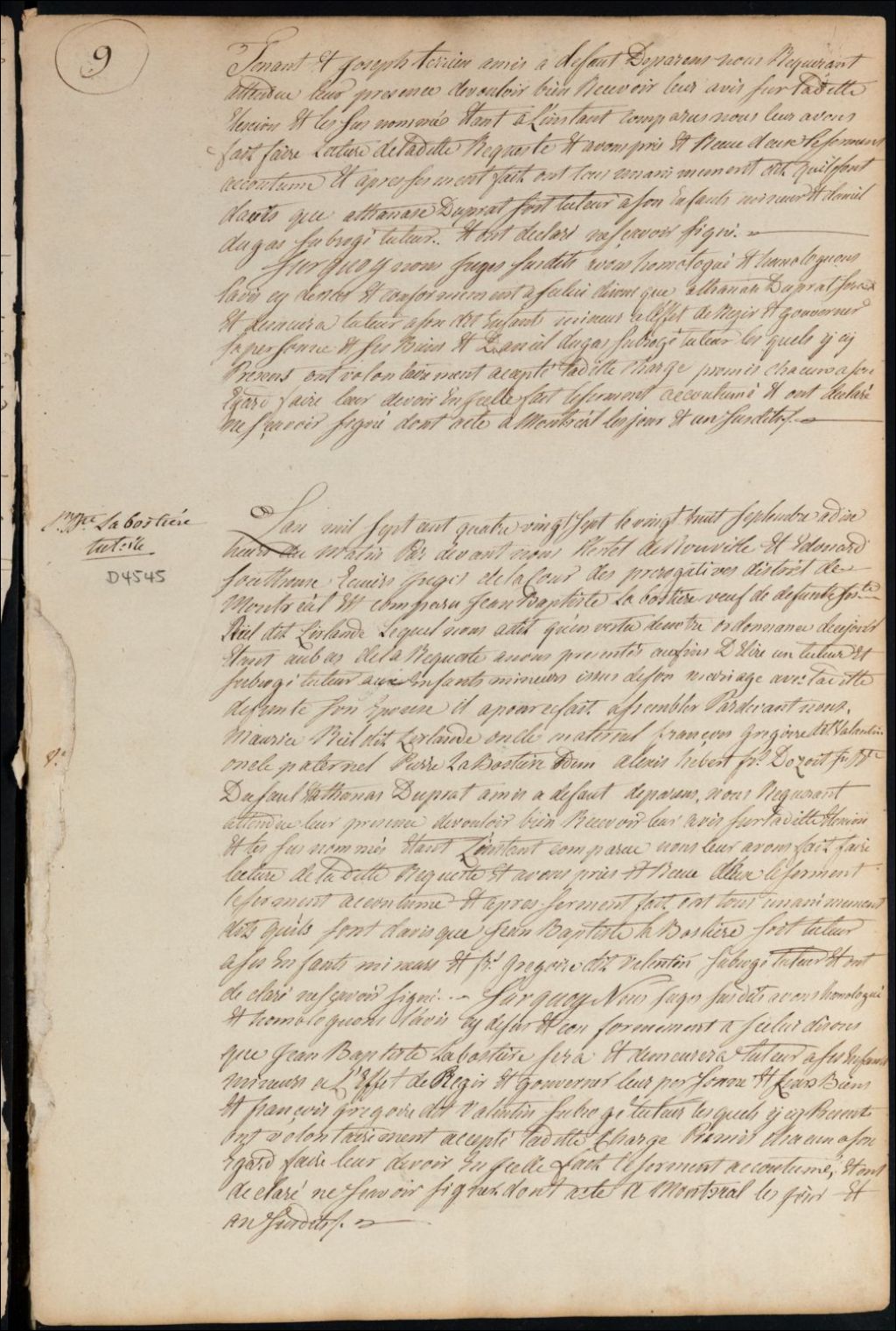 Tutelle des enfants mineurs de feu Josèphe Riel Lirlande et de Jean Baptiste Labossière