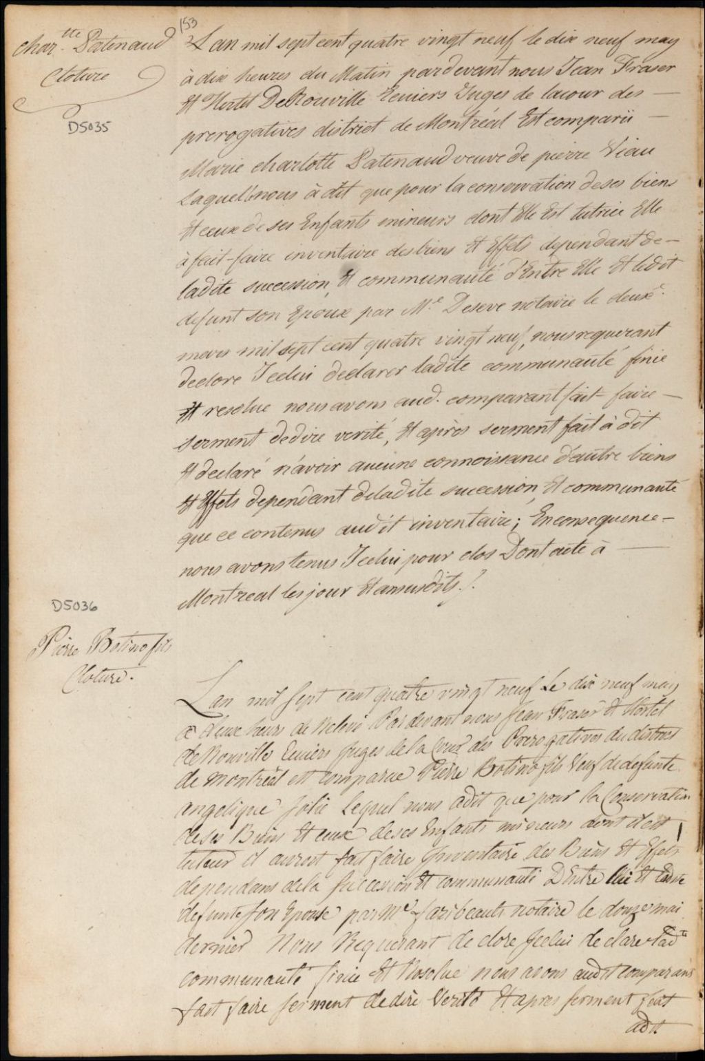 Clôture d'inventaire des biens de la succession et de la communauté de feu Pierre Viau et Marie Charlotte Patenaude