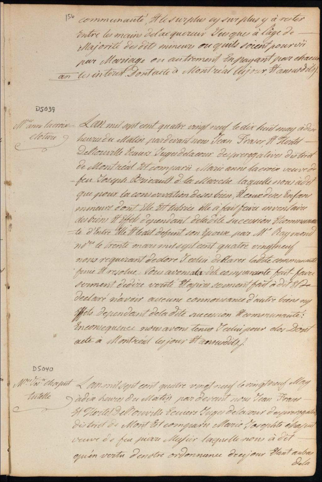 Clôture d'inventaire des biens de la succession et de la communauté de feu Joseph Bricault Lamarche et Marie Anne Lacroix