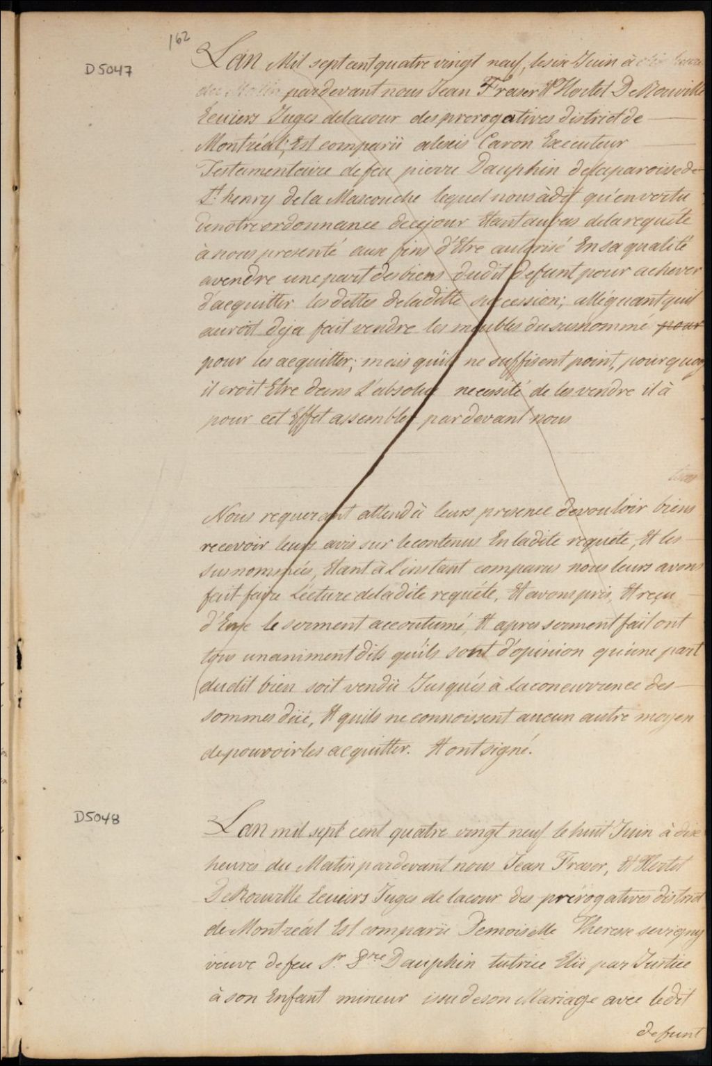 Autorisation à vendre d'Alexis Caron, exécuteur testamentaire de feu Pierre Dauphin de la paroisse de Saint-Henry de la Mascouche
