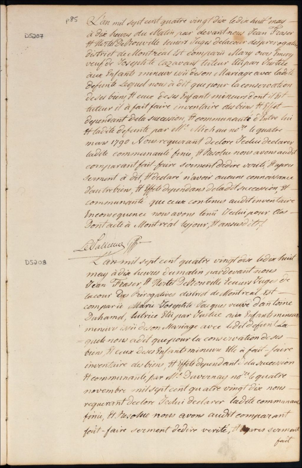 Clôture d'inventaire des biens de la succession et de la communauté de feu Marie Josèphe Casavant et Marie Ours Émery [de défunt Marie Ours Émery et Marie Josèphe Casavant ?] [de feu Marie Angélique Lamoureux et Antoine Émery ?] ]