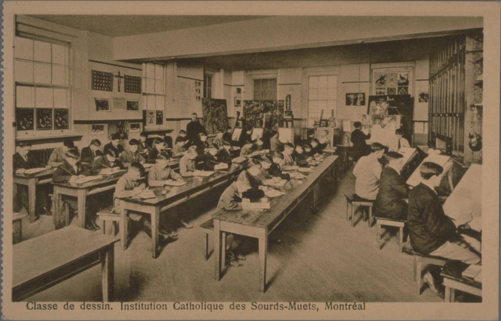 Classe de dessin. Institution Catholique des Sourd-Muets, Montréal