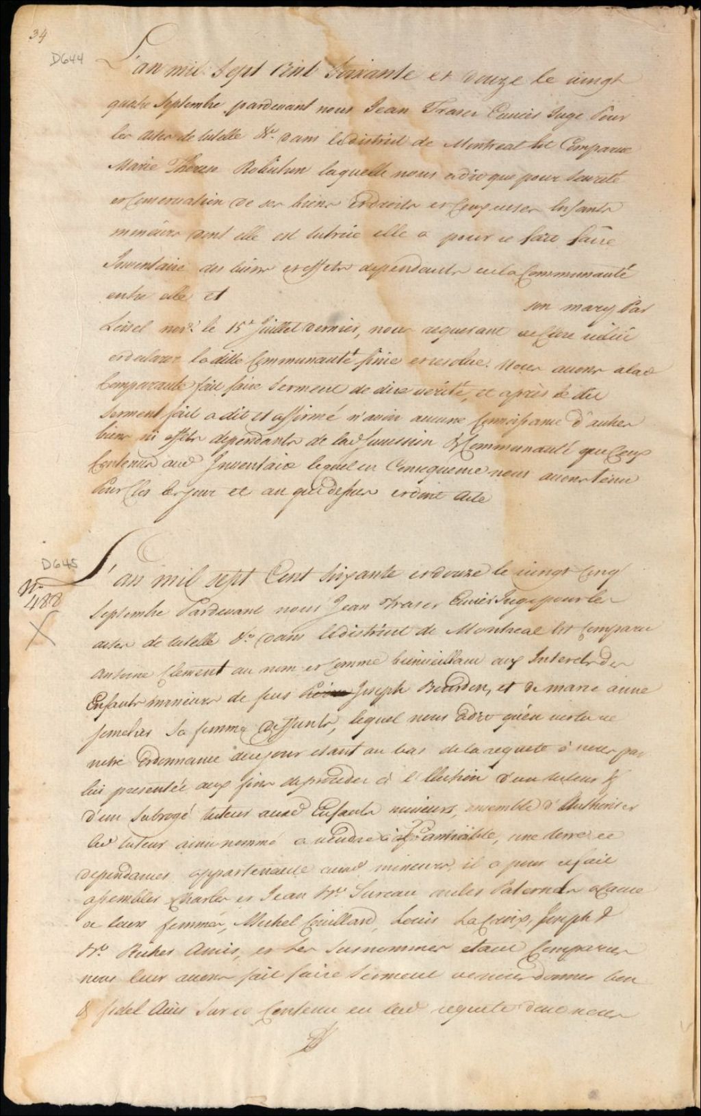 Tutelle des enfants mineurs des défunts Joseph Bourdon et Marie Anne Semelier [Marie Anne Chomelier] - Élection et administration tutélaires, 25 septembre 1772, Archives nationales à Montréal, Fonds Cour supérieure. District judiciaire de Montréal. Procédures en matières non contentieuses, (06M,CP601,S5,D645).