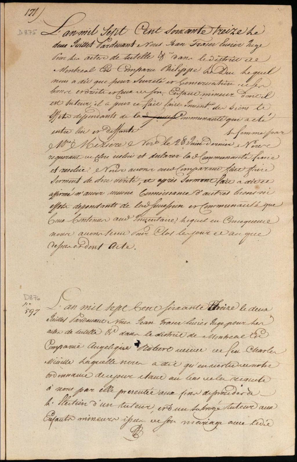 Clôture d'inventaire des biens de la succession et de la communauté de Philippe Leduc et feu [Marie Josèphe Décary ?]