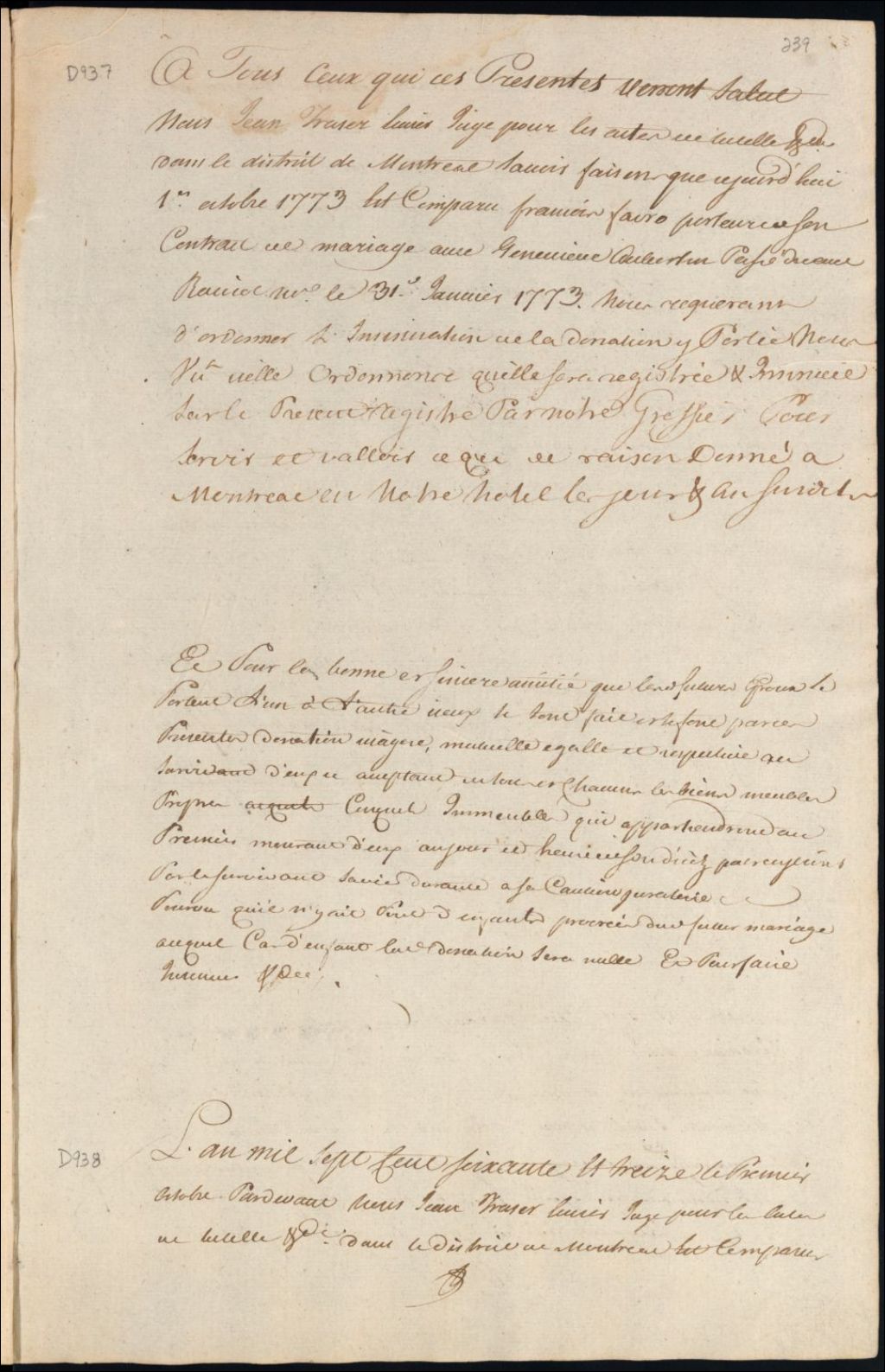 Insinuation de la donation portée au contrat de mariage entre François Favreau et Geneviève Aubertin