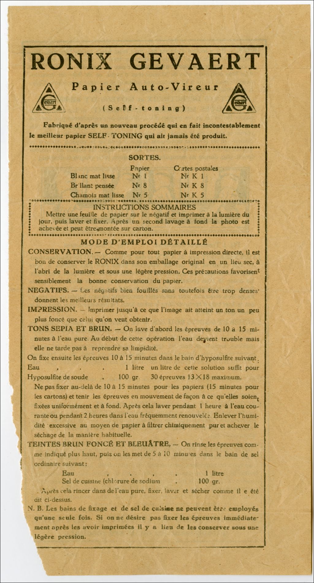 Modes d'emploi des papiers photographique Ridax et Ronix Gevaert