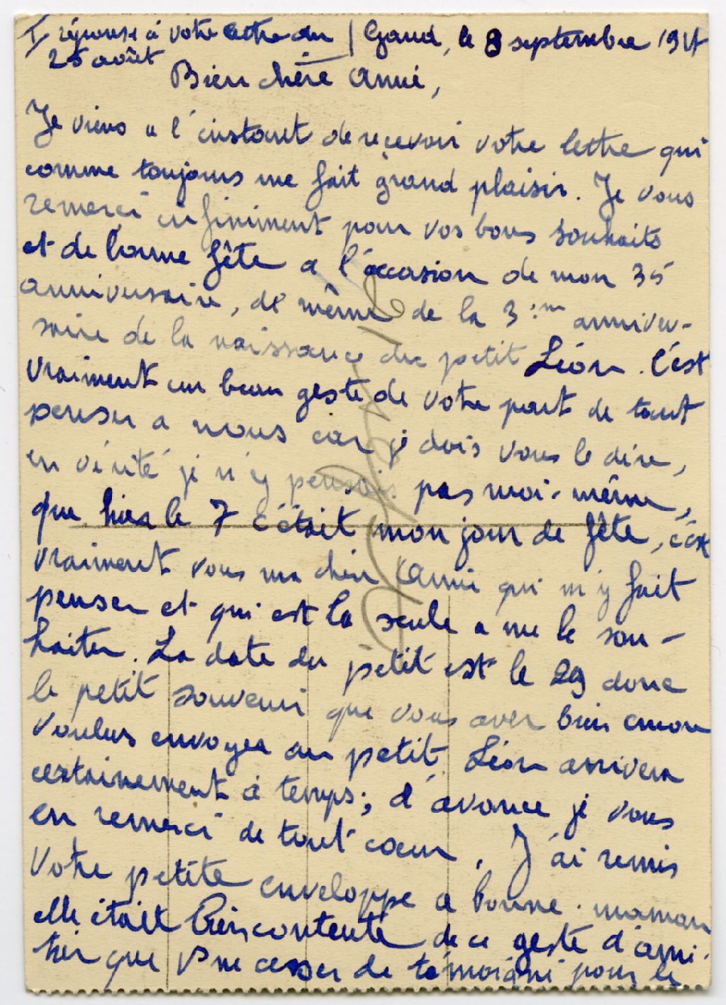 Correspondance de Charles de Bruyne à Gabrielle Pellerin, 8 septembre 1927