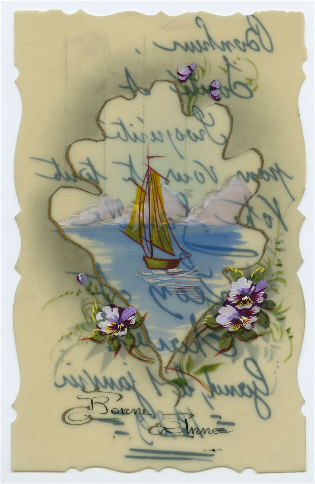 Carte de voeux de Charles de Bruyne à Gabrielle Pellerin, 1 janvier 1929, 1 janvier 1929, Archives nationales à Rimouski, Fonds Gabrielle Pellerin, (01R,P29,D200), De Bruyne, Charles.