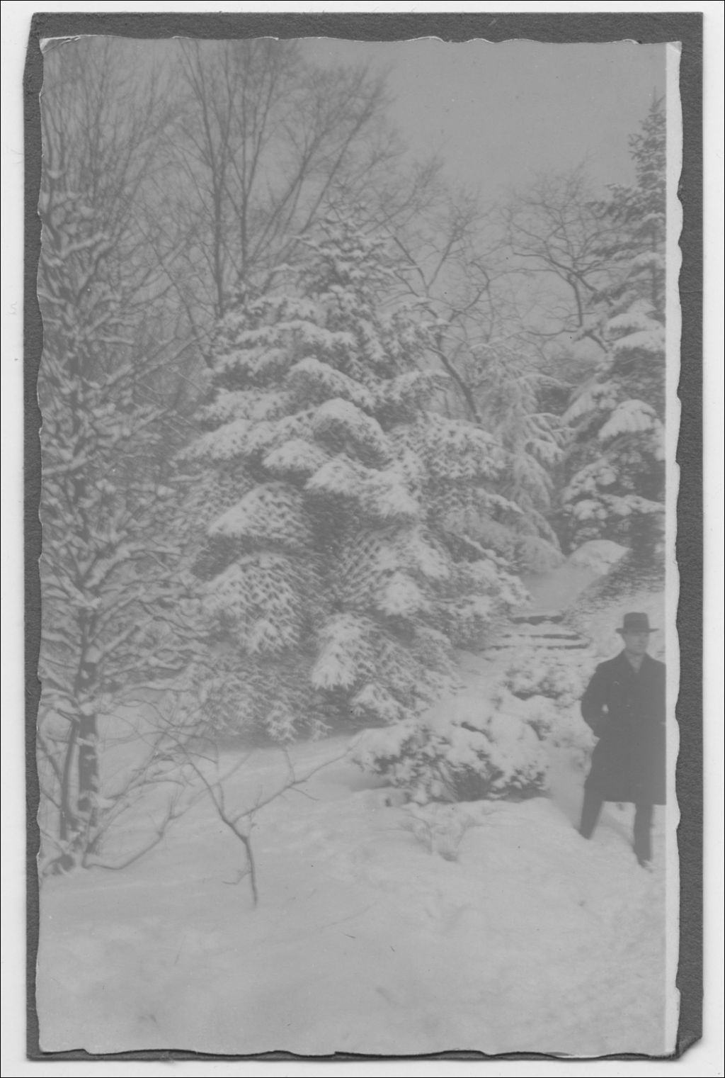 La photographie représente Charles de Bruyne au dessus d'une grotte au parc enneigé de Gand en Belgique. Elle faisait partie d'un album photo