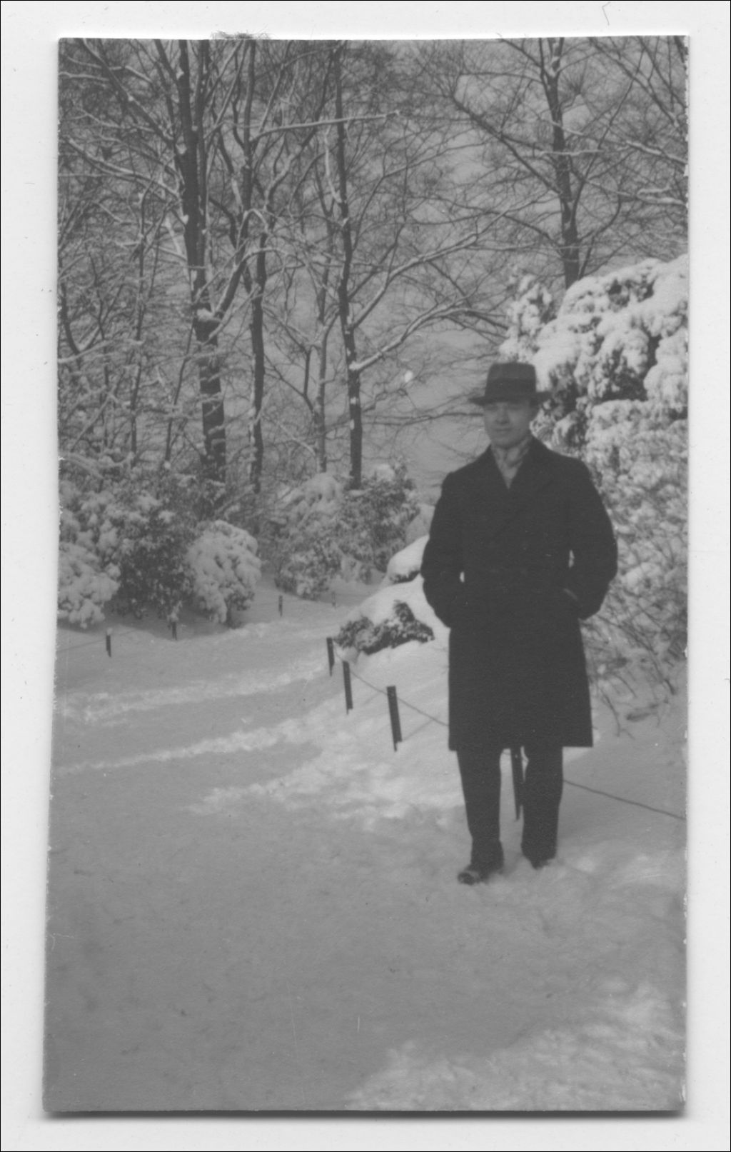 - La photographie représente Charles de Bruyne au dessus d'une grotte au parc enneigé de Gand en Belgique. Elle faisait partie d'un album photo