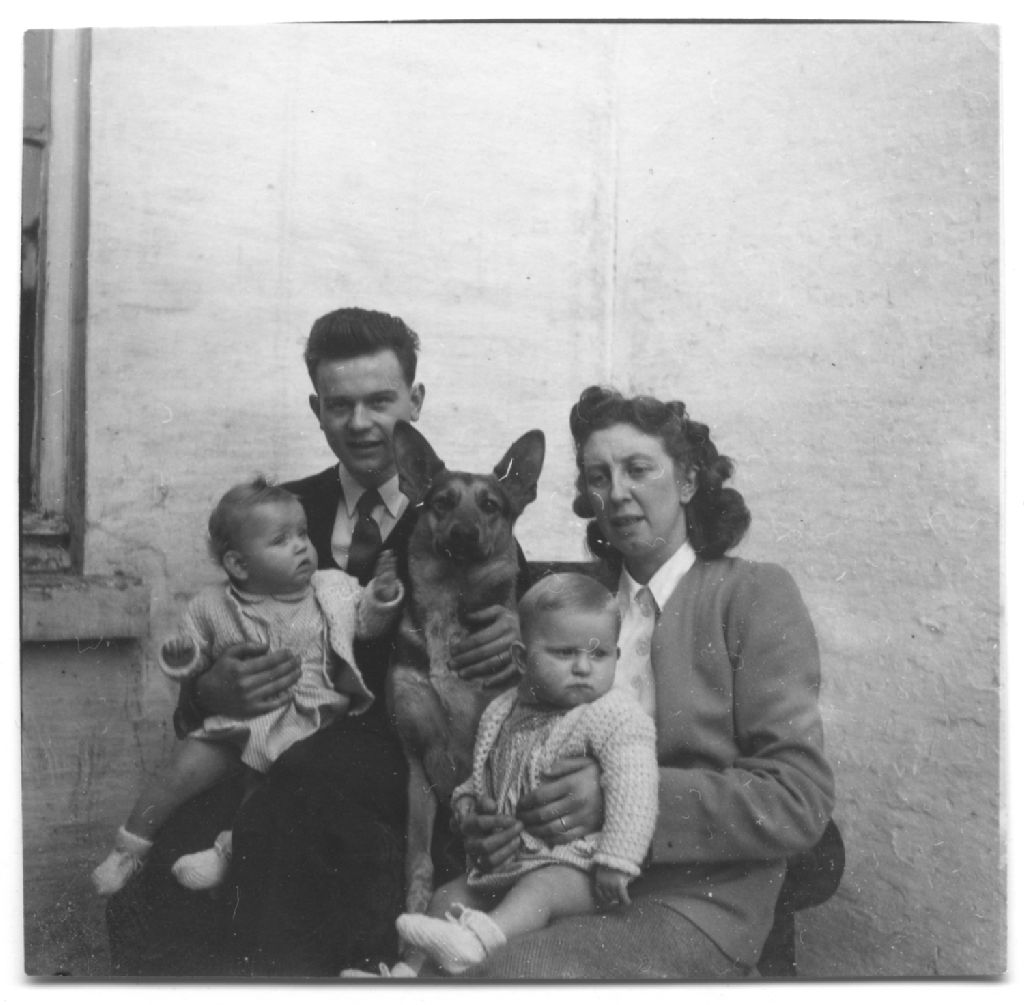 Léon de Bruyne, sa femme Antoinette Pieters et leurs enfants Marc et Marike, Janvier 1949, Archives nationales à Rimouski, Fonds Gabrielle Pellerin, (01R,P29,D361,P2), Charles de Bruyne.