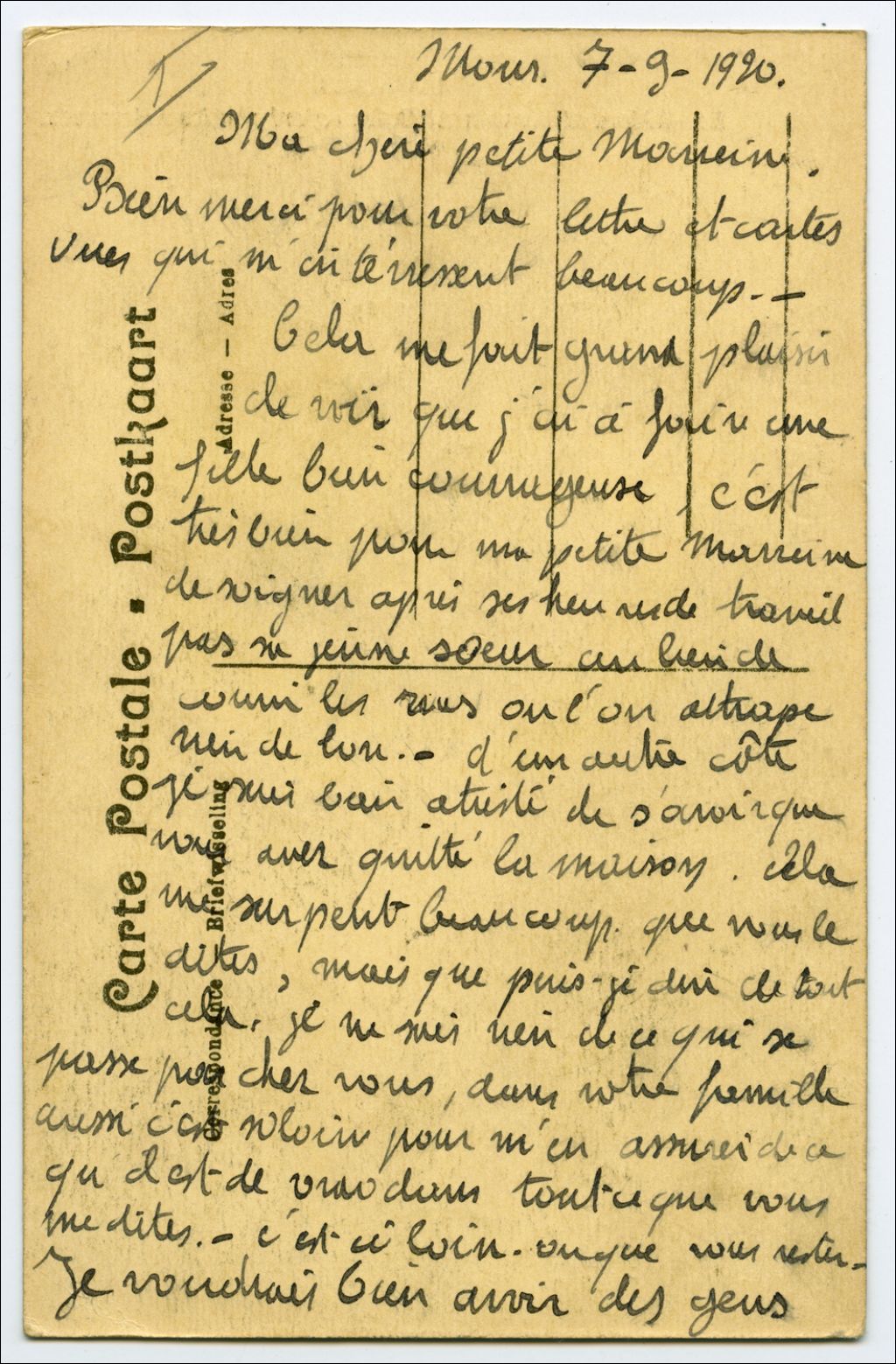 Correspondance de Charles de Bruyne à Gabrielle Pellerin, 7 septembre 1920