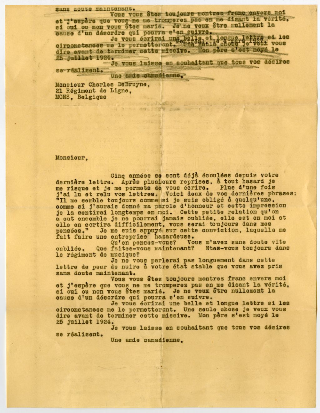 Correspondance de Gabrielle Pellerin à Charles de Bruyne, 4 mars 1927