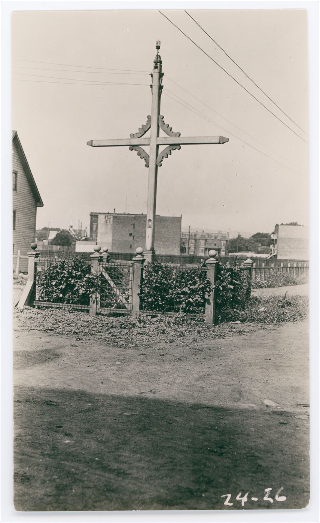 Croix de chemin, Pointe-Saint-Charles, Montréal, 31 août 1924, Archives nationales à Québec, Fonds Édouard-Zotique Massicotte, (03Q,P181,P32), Collection d'Édouard-Zotique Massicotte, photographe inconnu.