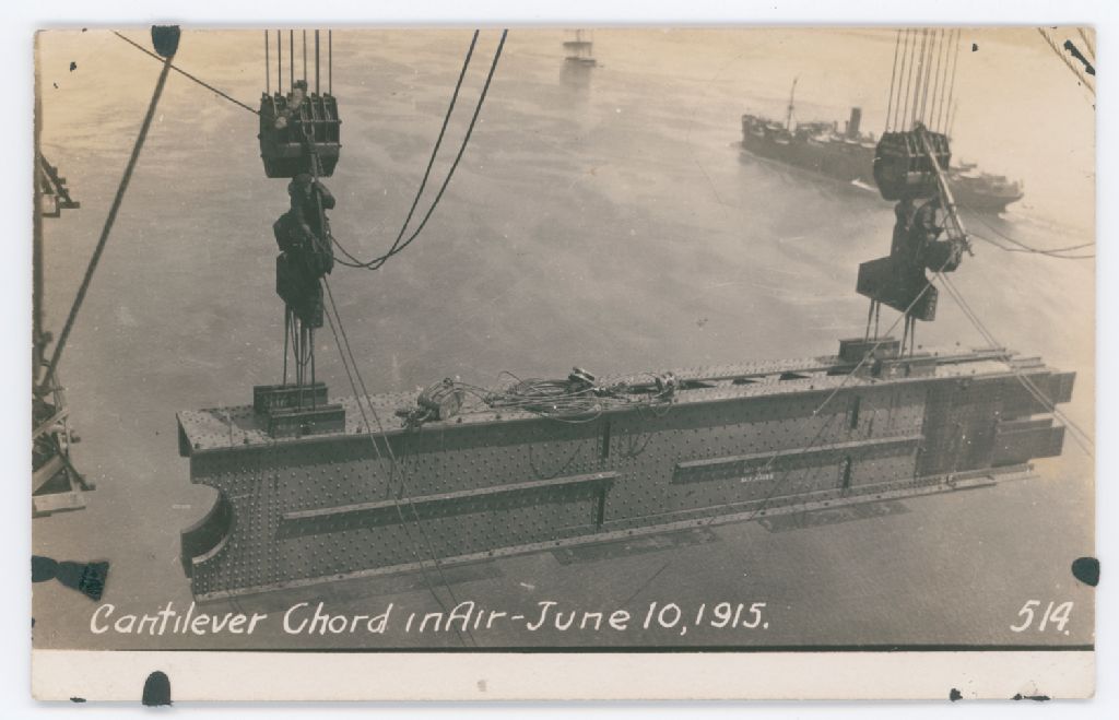 Cantilever chord in air, north shore, Quebec Bridge - june 10, 1915