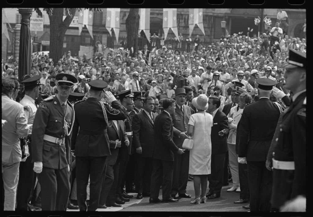 Visite du général Charles de Gaulle à Québec - Foule devant la Basilique Notre-Dame-de-Québec, 1967, Archives nationales à Québec, Fonds Jules Rochon, (03Q,P743,P125), Jules Rochon.