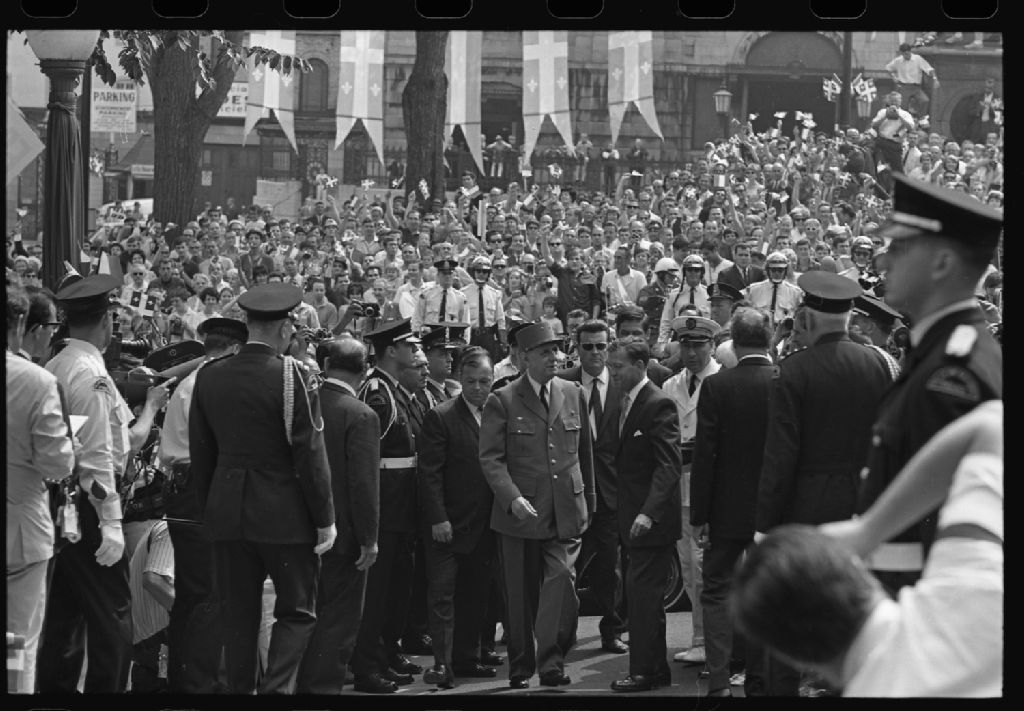 Visite du général Charles de Gaulle à Québec - Foule devant la Basilique Notre-Dame-de-Québec, 1967, Archives nationales à Québec, Fonds Jules Rochon, (03Q,P743,P126), Jules Rochon.