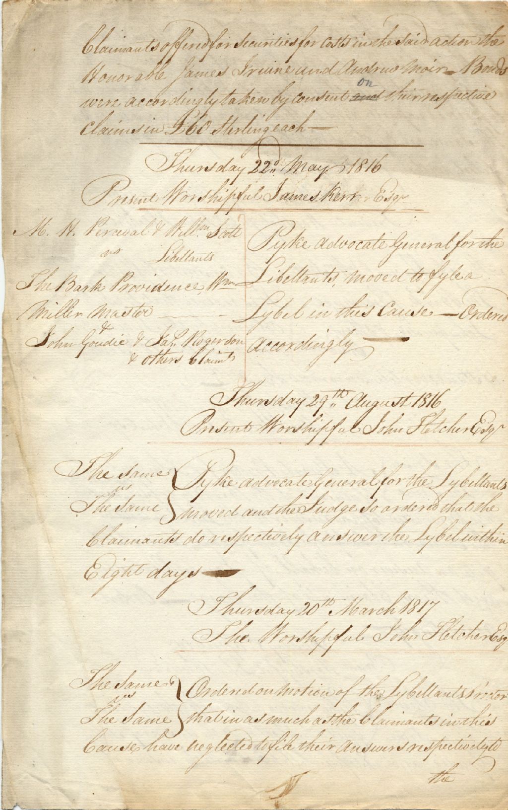 Registre sans titre (1816-1819), 22 mai 1816 - 8 février 1819, Archives nationales à Québec, Fonds Cour de Vice-Amirauté, (03Q,ZC93,S2,D12).