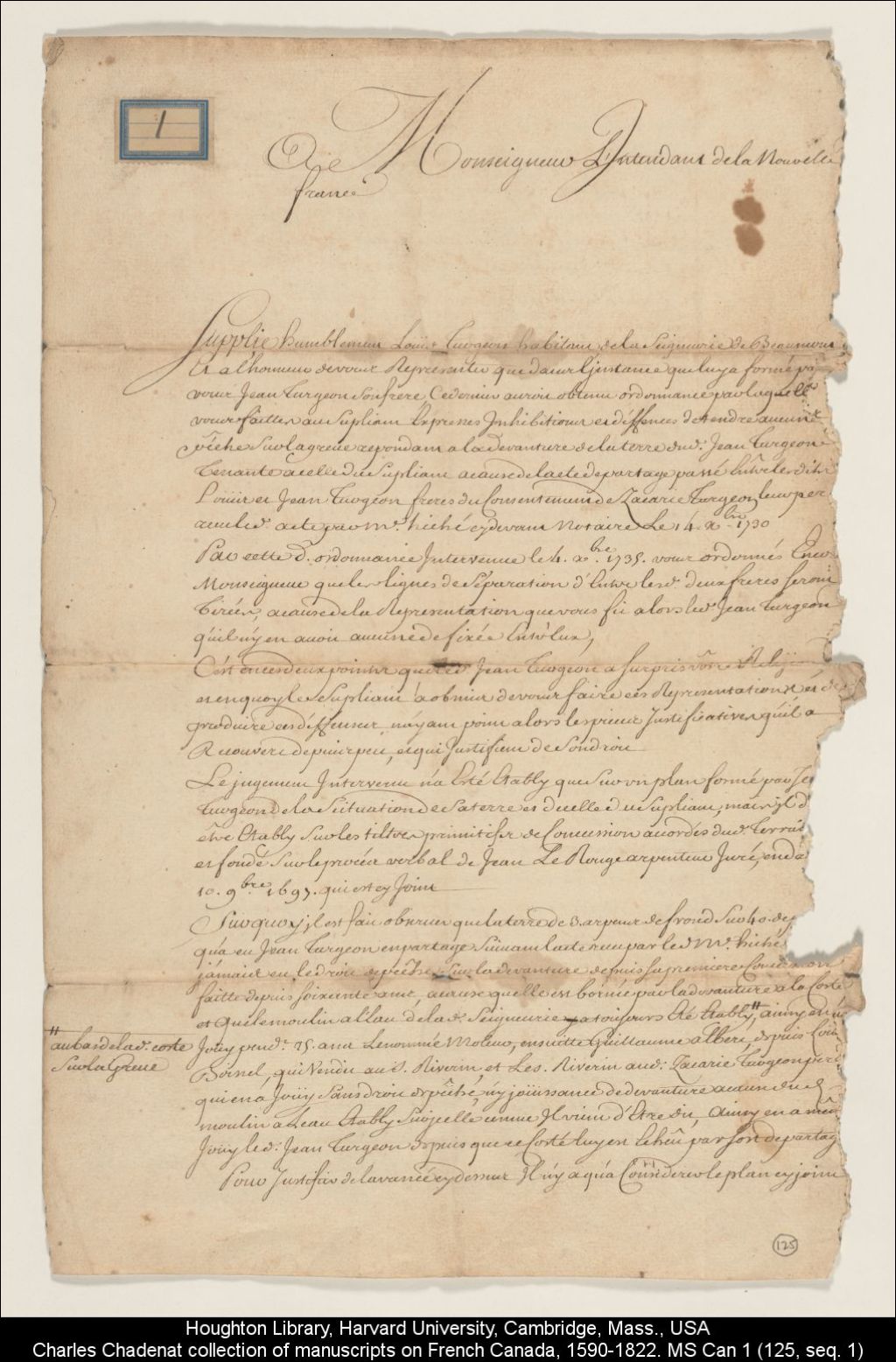 - Pétition de Louis Turgeon à l'intendant Gilles Hocquart concernant des problèmes de terre dans la seigneurie de Lauzon