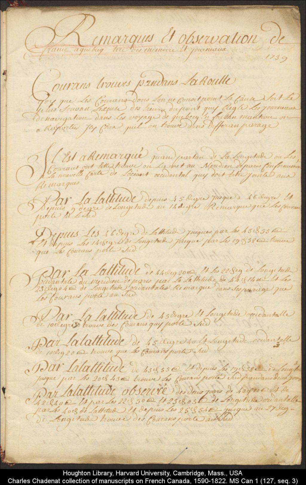 - Remarques et observations sur la navigation de France à Québec, tirées des mémoires et journaux