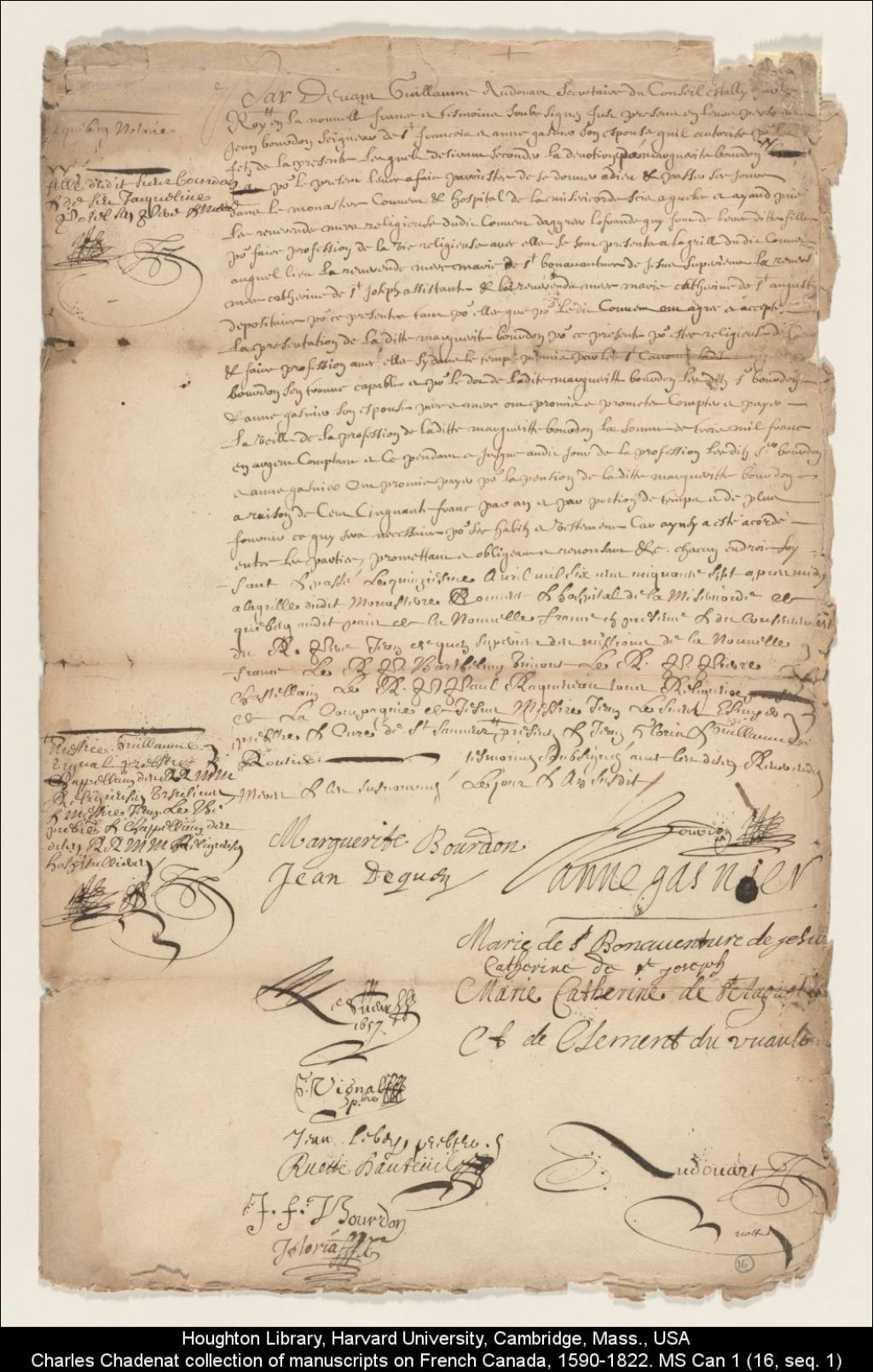 - Accord pour l'entrée de Marguerite Bourdon, fille de Jean Bourdon, au couvent de La Miséricorde à Québec (Hôtel-Dieu de Québec)