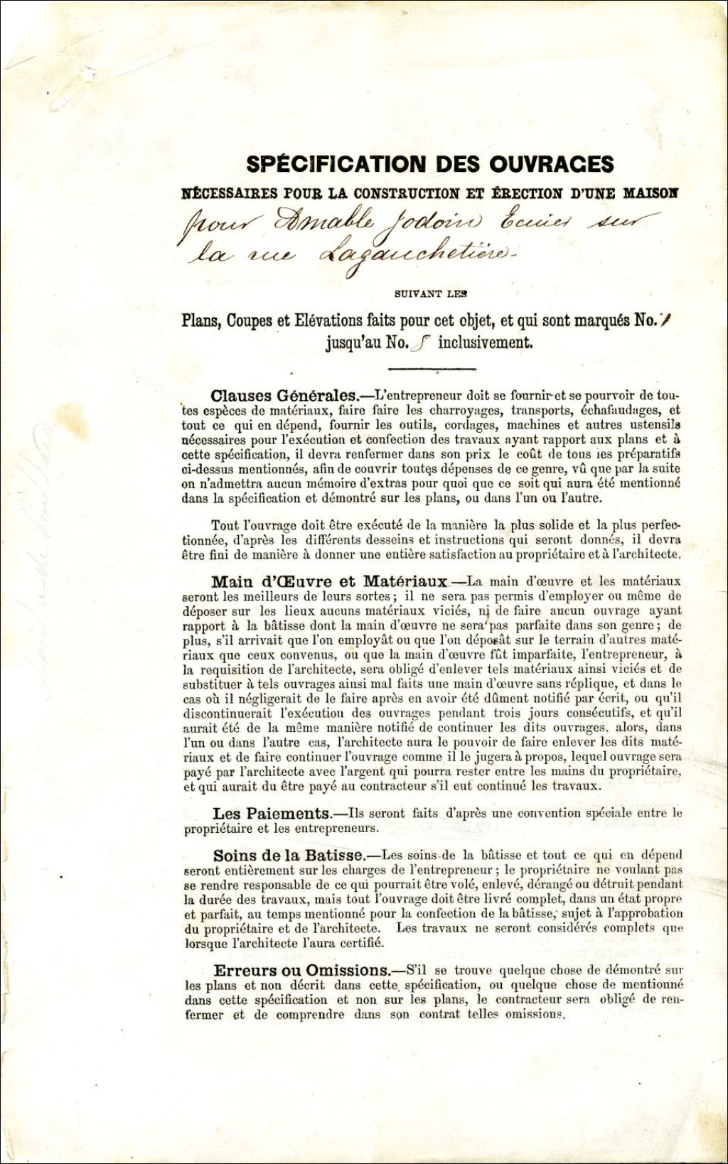 - Marché de construction de la maison de Marie-Hélène et Amable Jodoin, fils