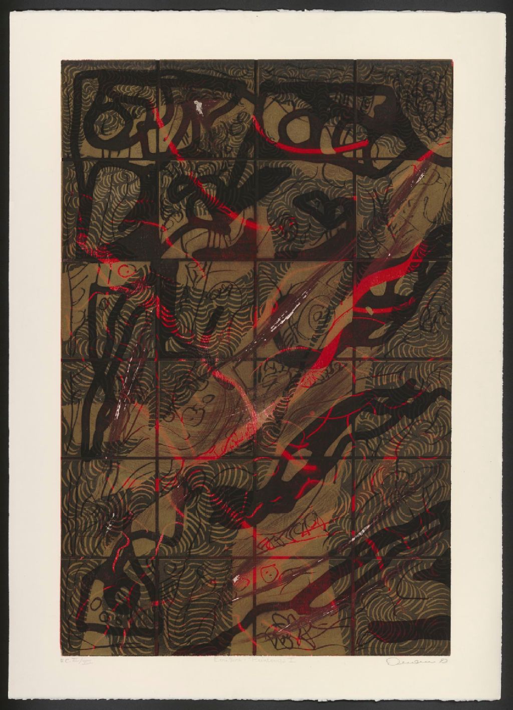 1 estampe : gravure sur bois, couleur ; 92 x 60 cm, sur feuille 106 x 76 cm