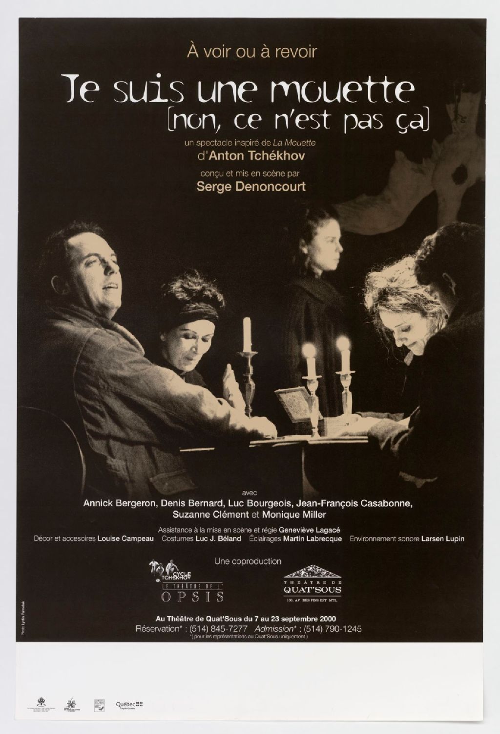 Je suis une mouette (non, ce n'est pas ça), un spectacle inspiré de La mouette d'Anton Tchékhov, conçu et mise en scène par Serge Denoncourt à voir ou à revoir