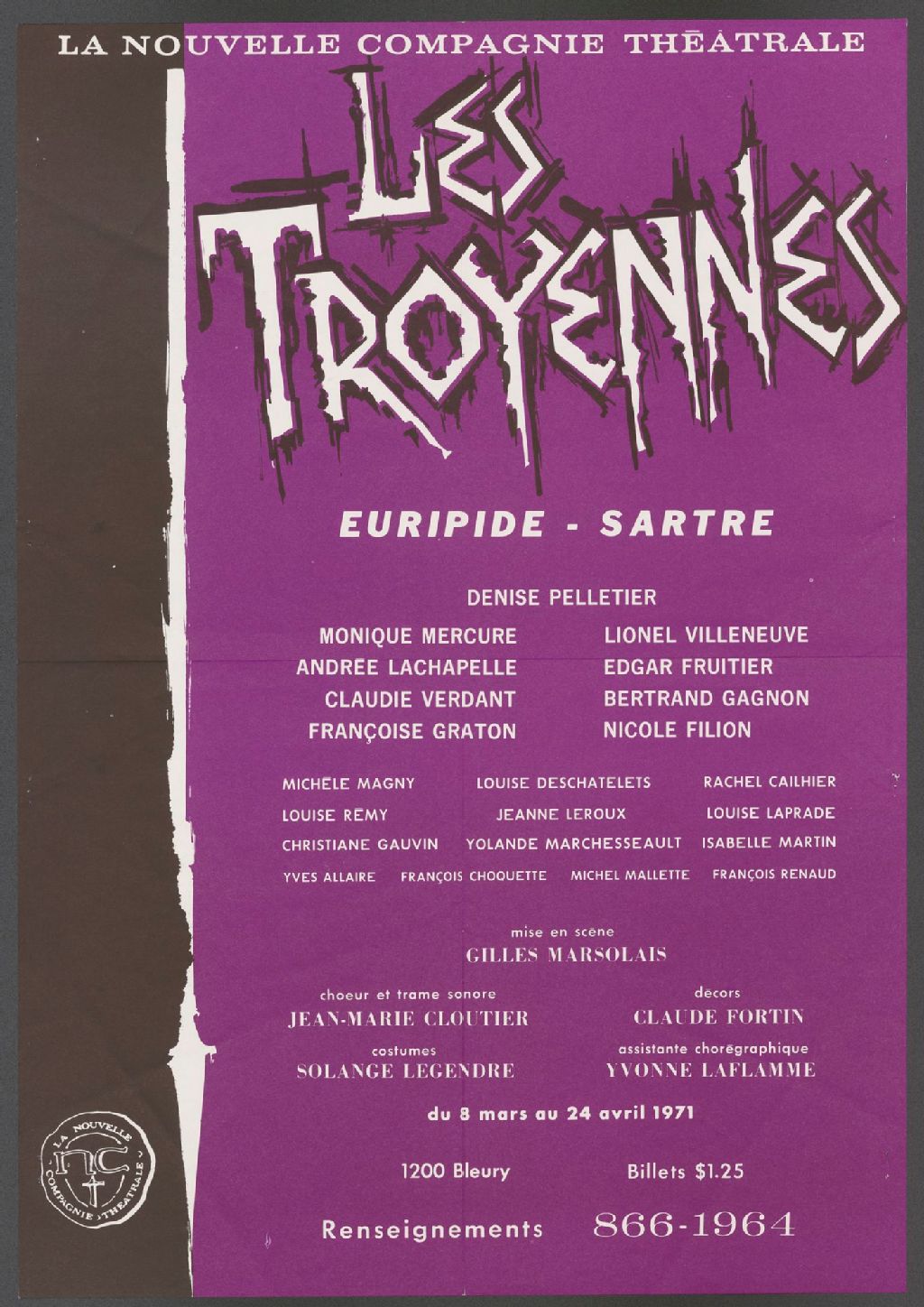 Les troyennes, [d']Euripide-Sartre, mise en scène Gilles Marsolais